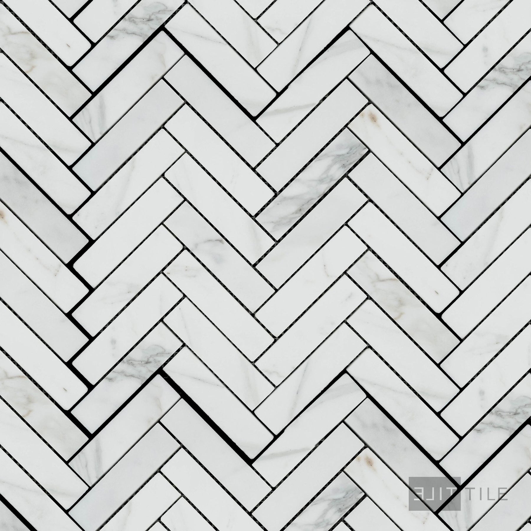 Calacatta Gold Marble 1X4 Herringbone Honed Mosaic