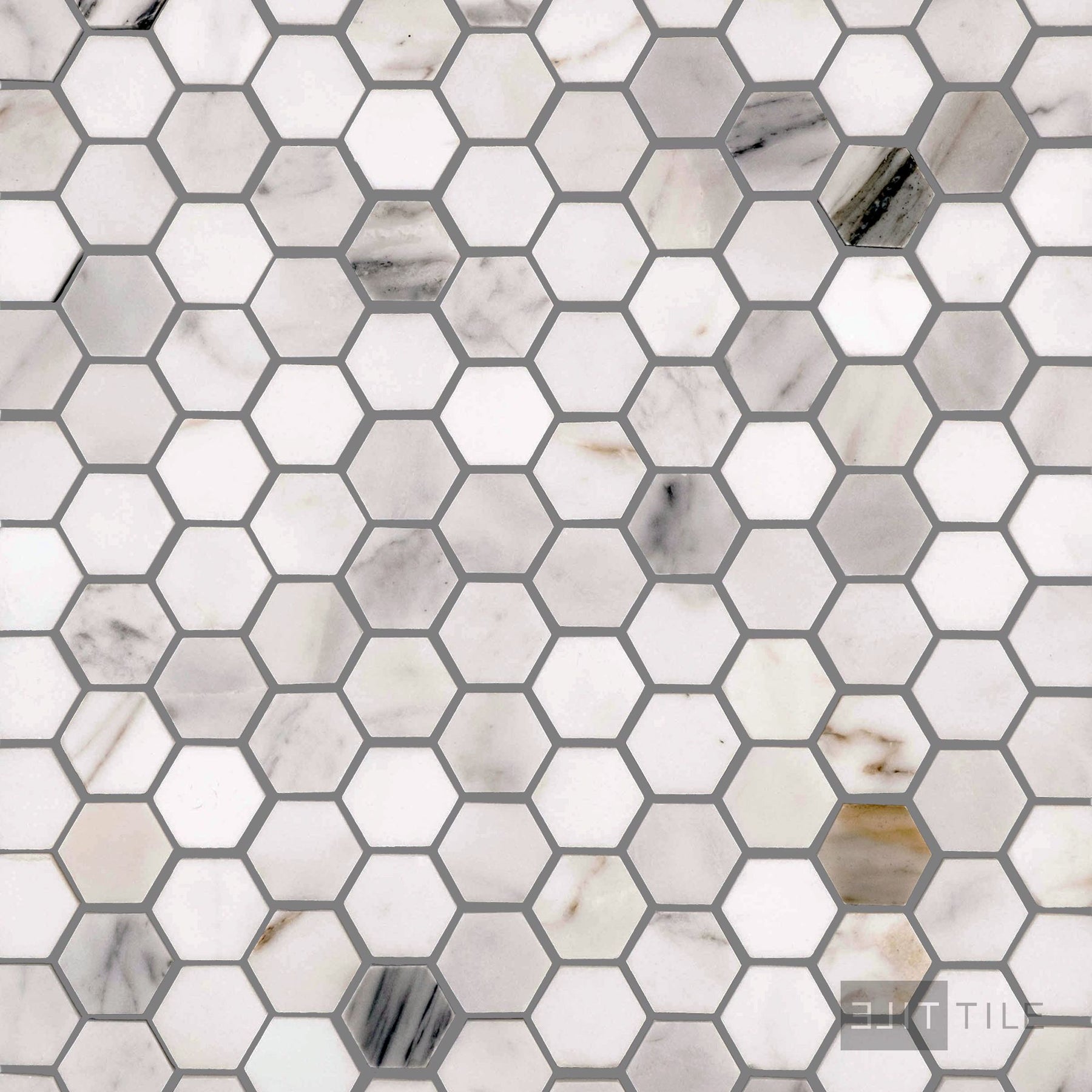 Calacatta Gold Marble 1" Hexagon Honed Mosaic