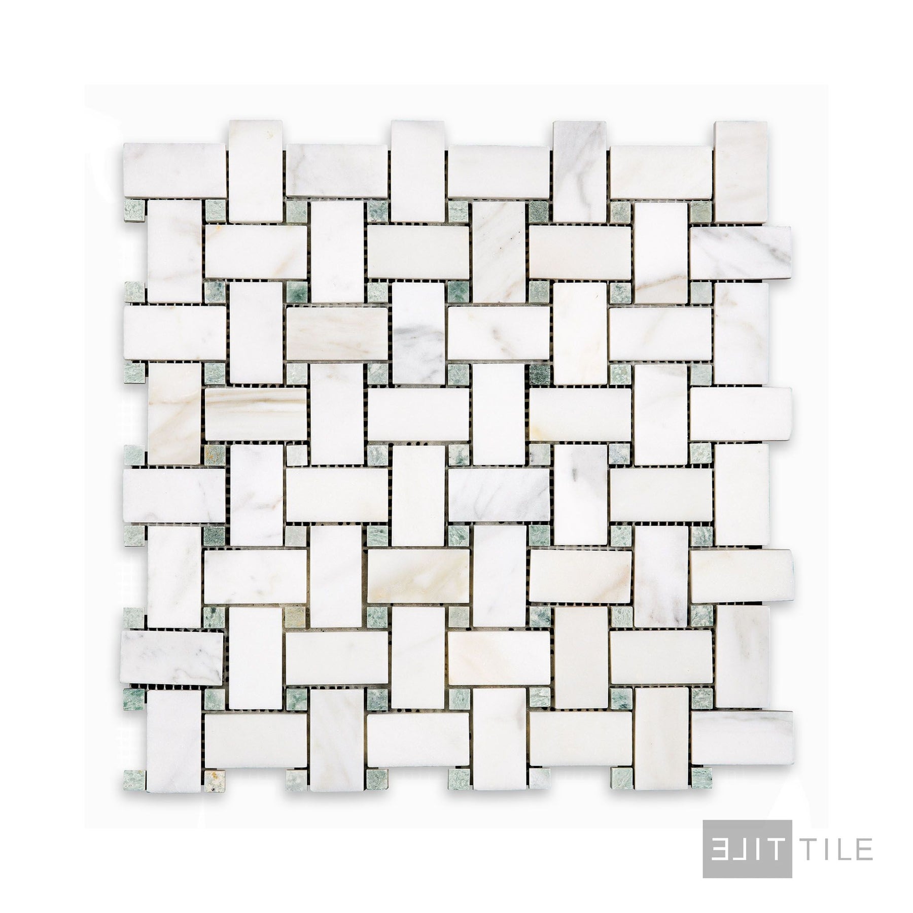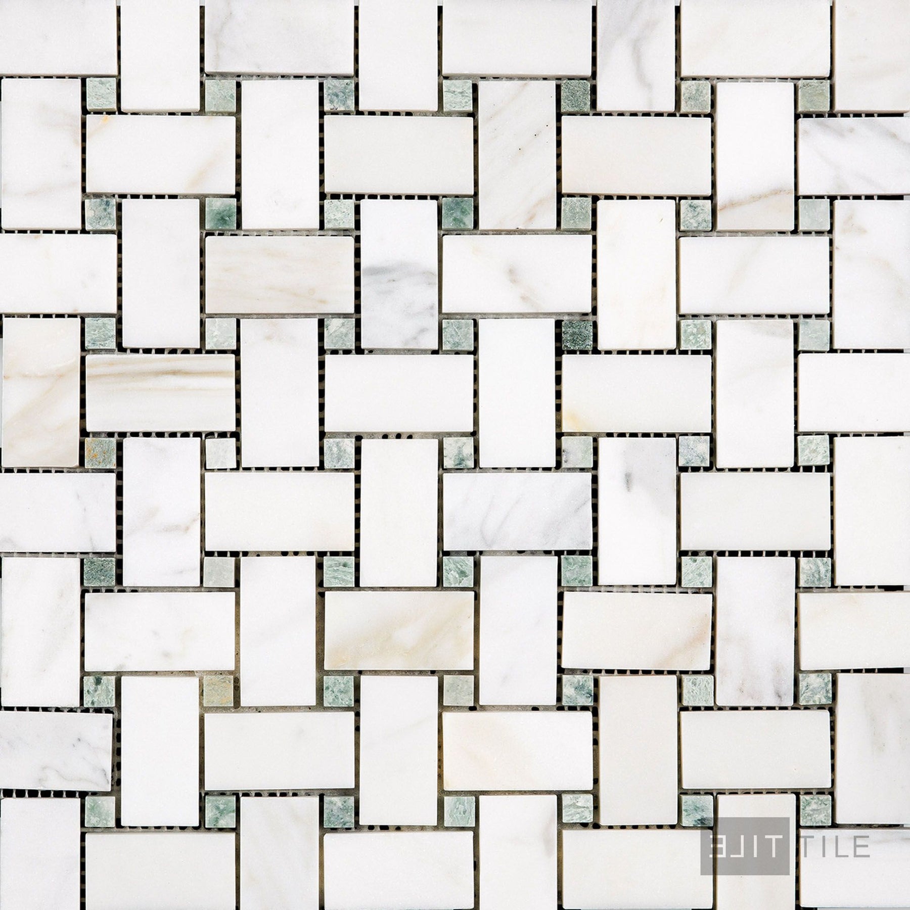 Calacatta Gold Marble Basketweave W/Green Dot Honed Mosaic