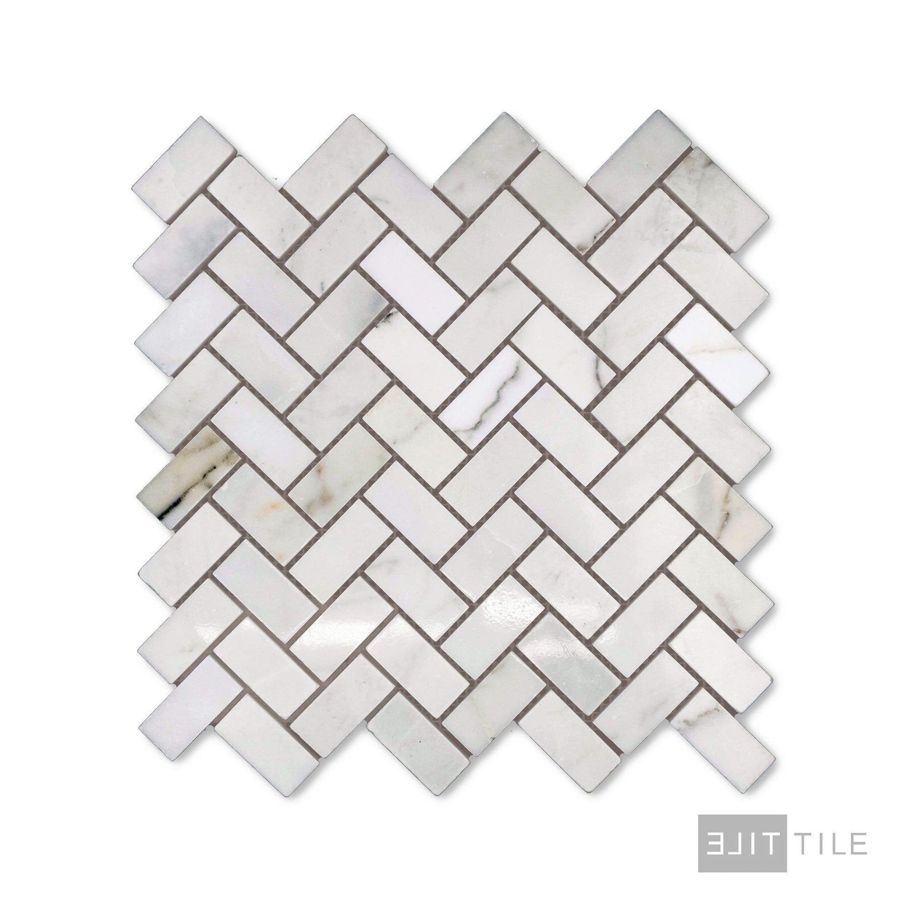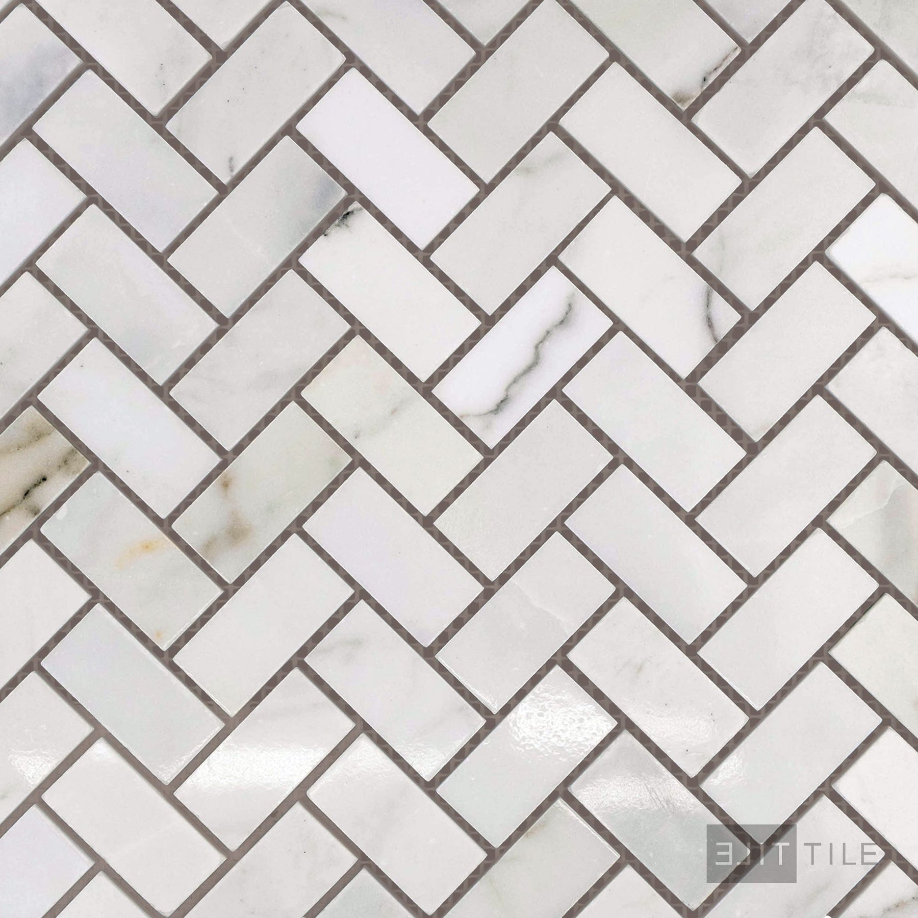 Calacatta Gold Marble 1X2 Herringbone Polished Mosaic