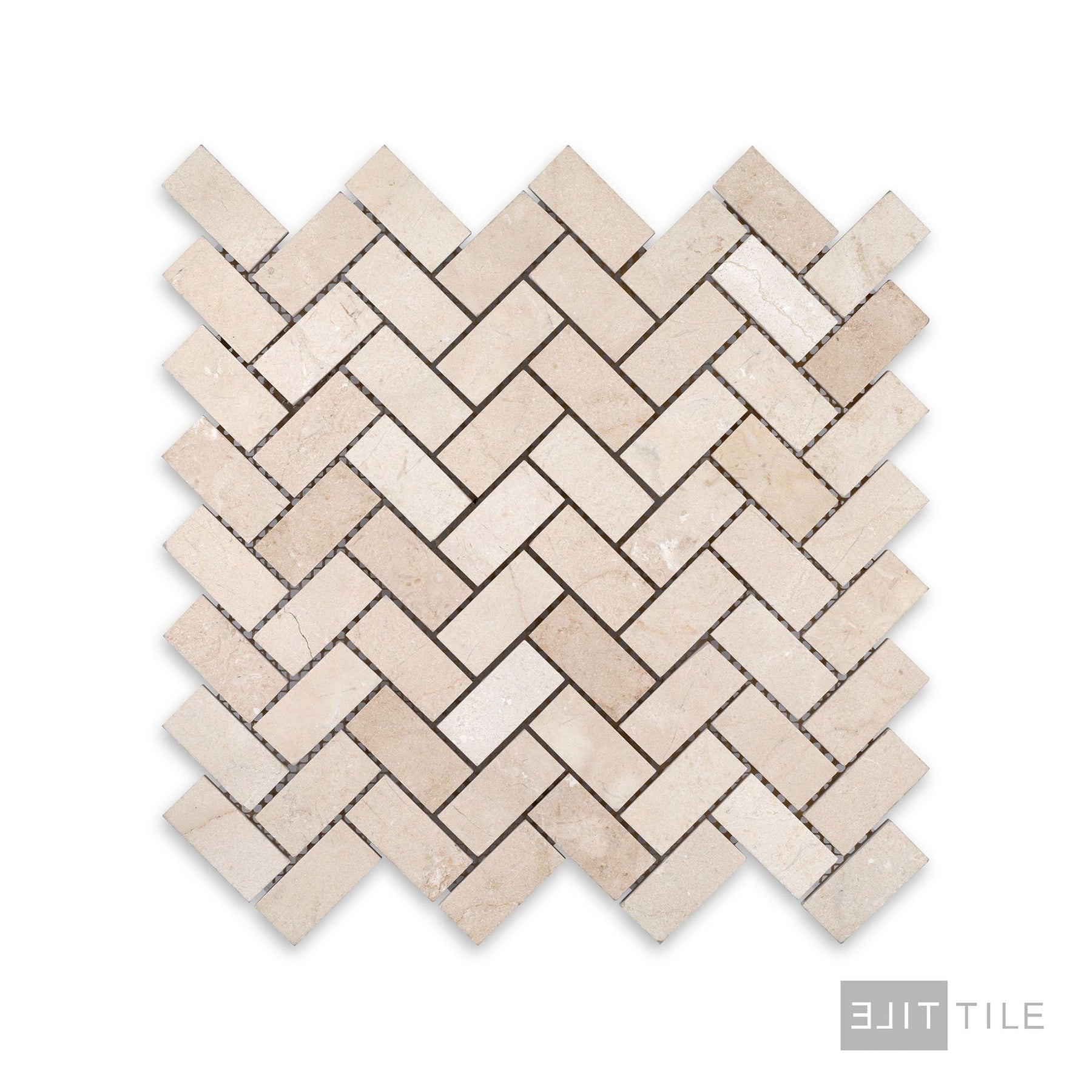 Crema Marfil Marble 1X2 Herringbone Honed Mosaic