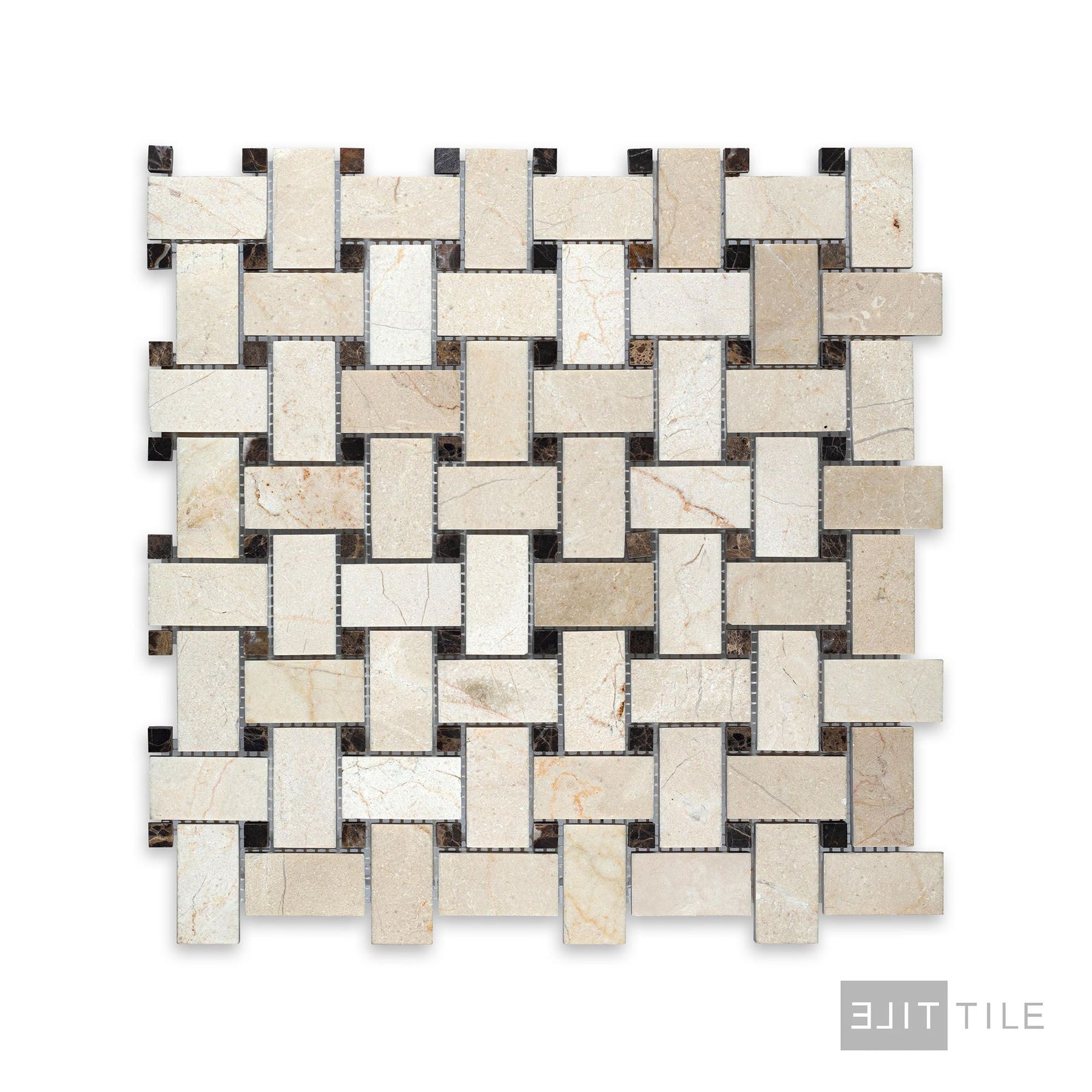 Crema Marfil Marble Basketweave W/ Brown Dot Honed Mosaic