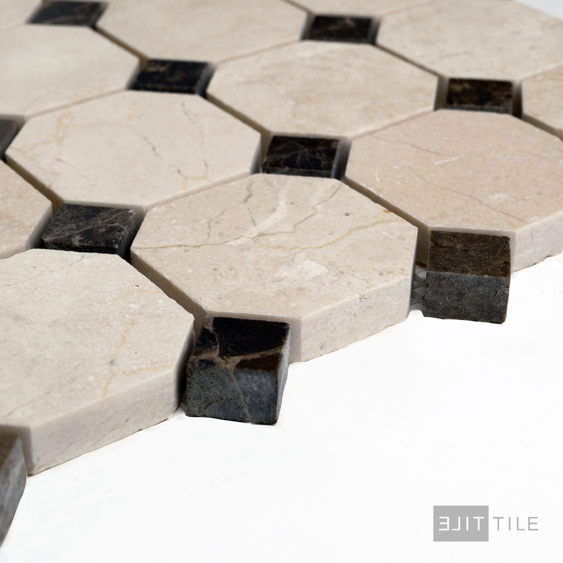 Crema Marfil Marble 2" Octagon W/Brown Dot Polished Mosaic