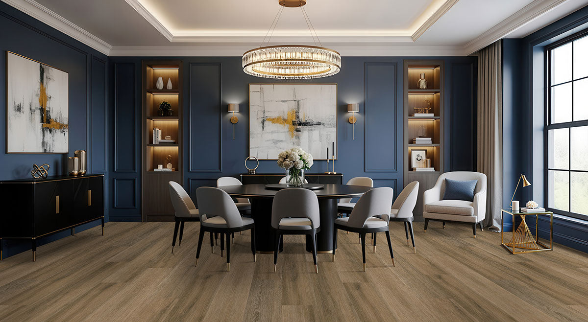 Laurel Reserve collection features extra-wide 9x48” luxury vinyl planks in warm blonde and light brown tones, combining timeless style with modern durability. With an 8MM thickness—including a 6MM core and 2MM attached pad—these planks provide comfort underfoot and long-lasting performance. Designed with a commercial-grade wear layer, Laurel Reserve resists daily wear and tear, making it ideal for residential and commercial spaces. This collection offers a seamless blend of elegance, strength, and low-maintenance convenience.