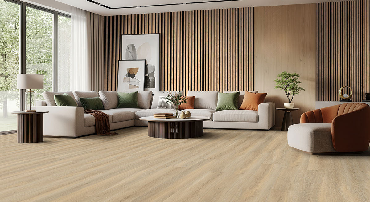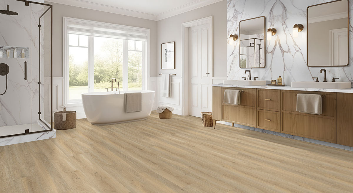 Laurel Reserve collection features extra-wide 9x48” luxury vinyl planks in warm blonde and light brown tones, combining timeless style with modern durability. With an 8MM thickness—including a 6MM core and 2MM attached pad—these planks provide comfort underfoot and long-lasting performance. Designed with a commercial-grade wear layer, Laurel Reserve resists daily wear and tear, making it ideal for residential and commercial spaces. This collection offers a seamless blend of elegance, strength, and low-maintenance convenience.