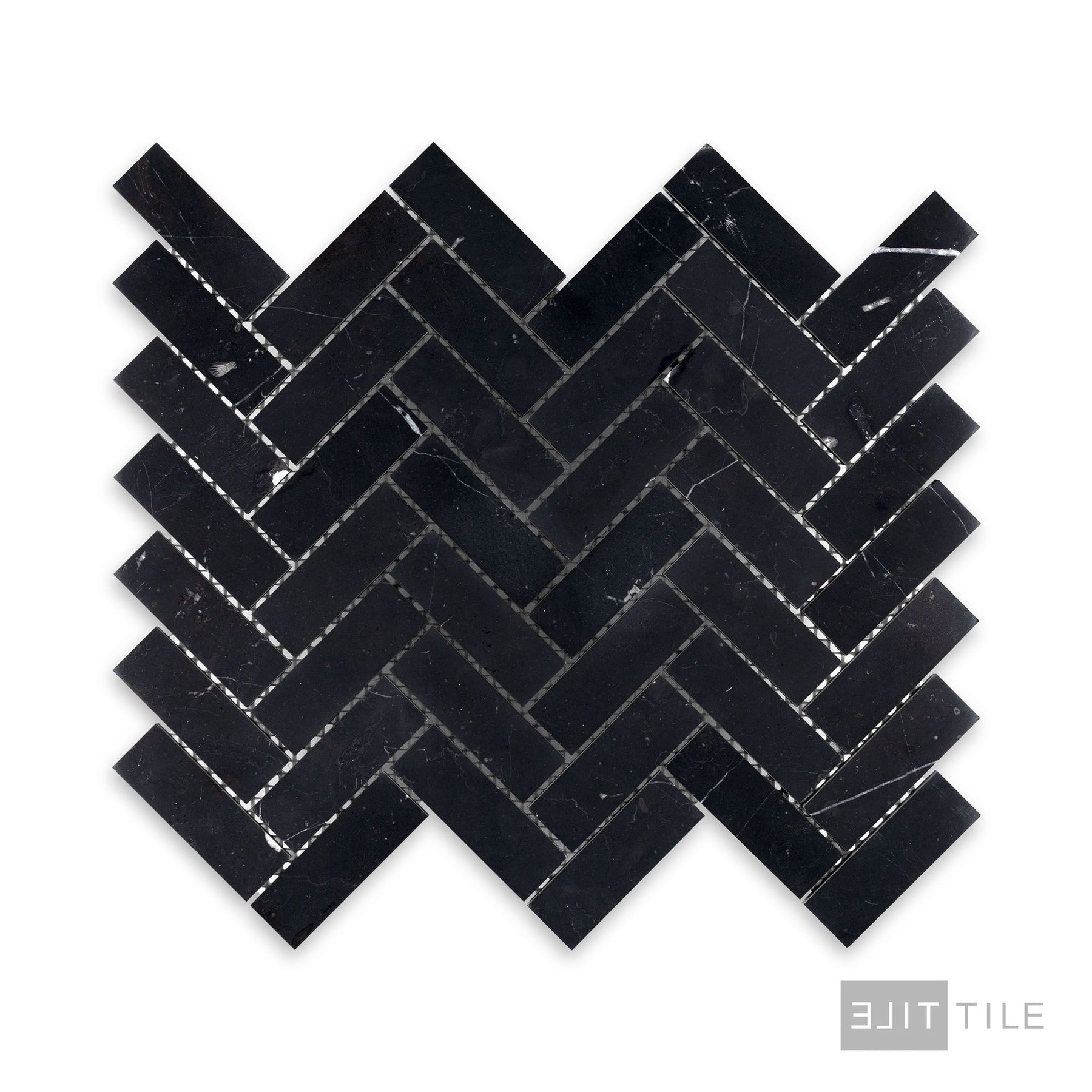 Negro Marquina Marble 1X3 Herringbone Honed Mosaic
