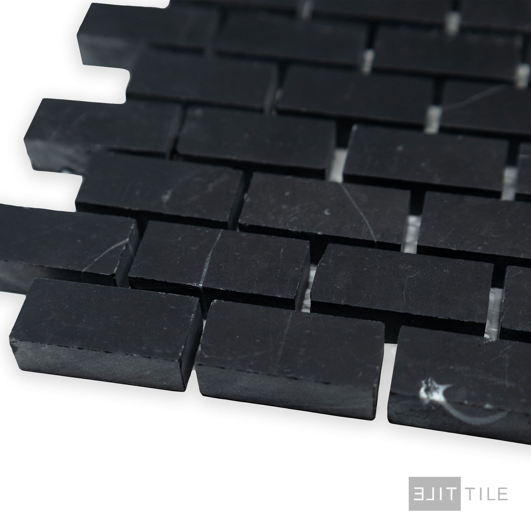 Negro Marquina Marble 5/8X1-1/4 Brick Honed Mosaic