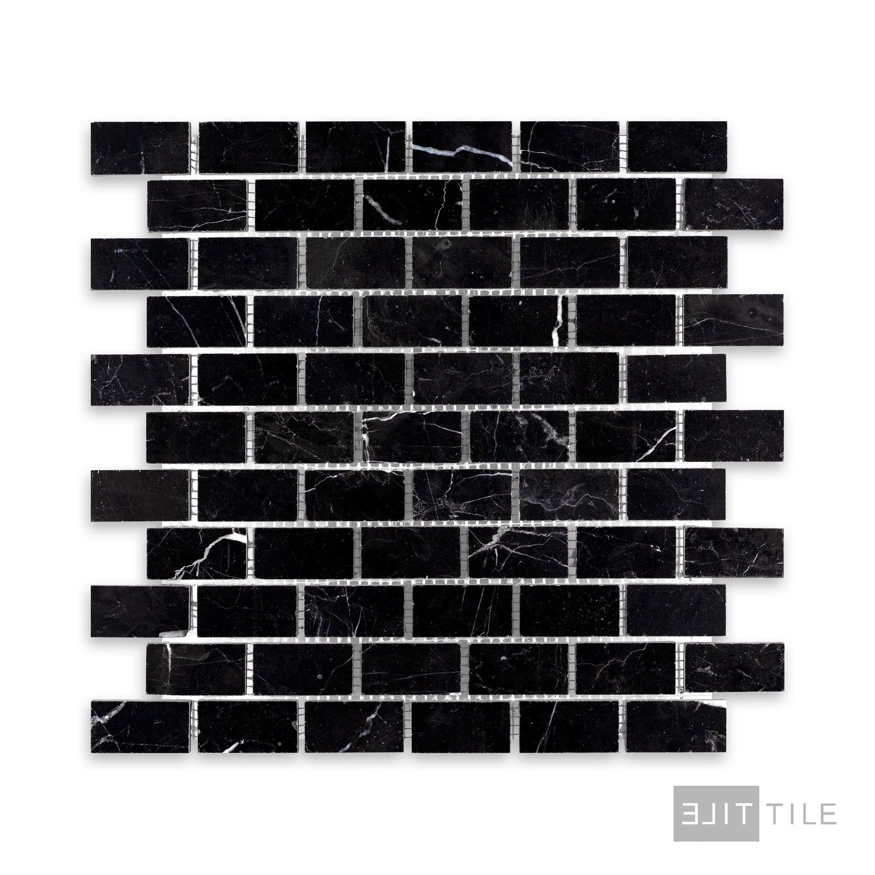 Negro Marquina Marble 1X2 Brick Honed Mosaic