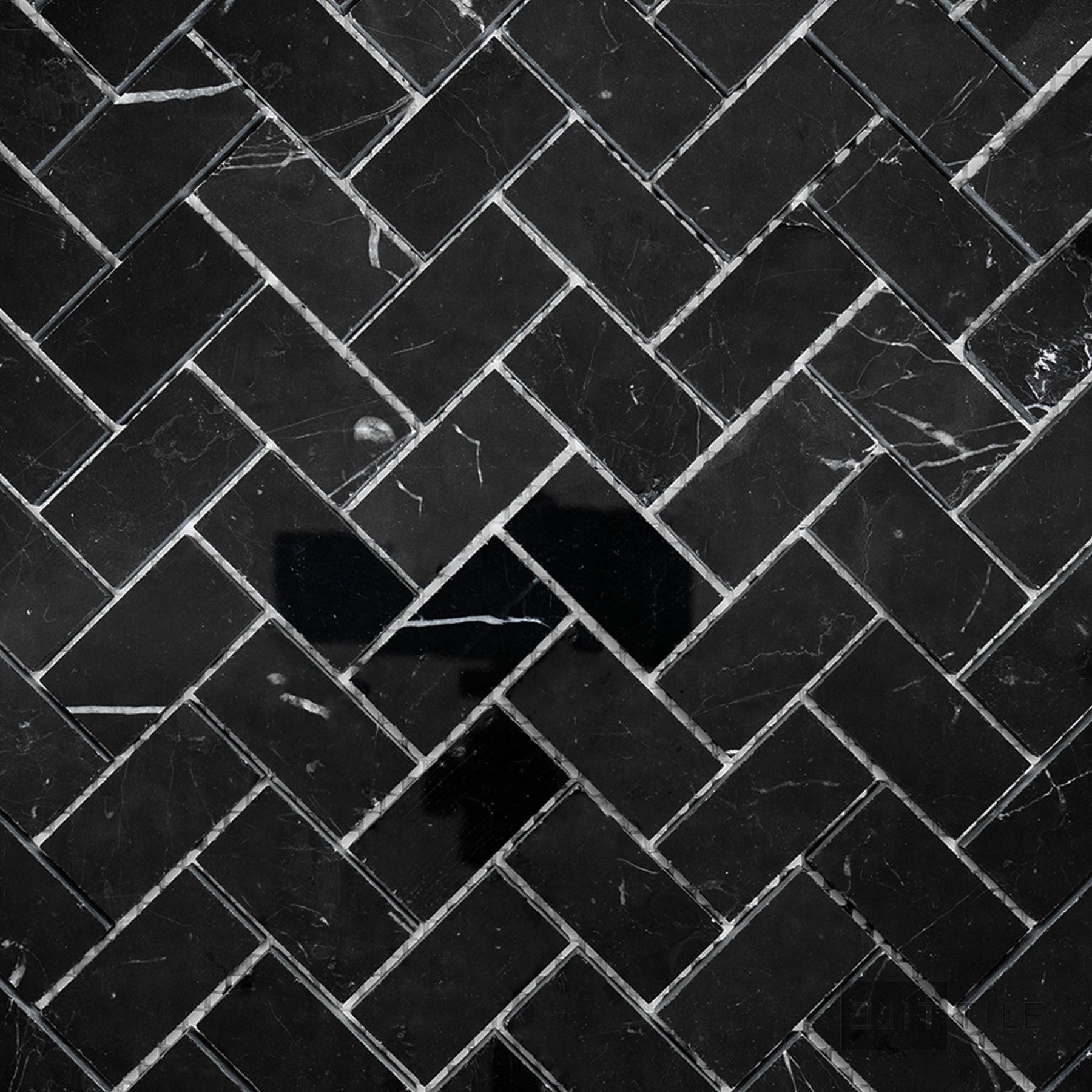 Negro Marquina Marble 1X2 Herringbone Polished Mosaic