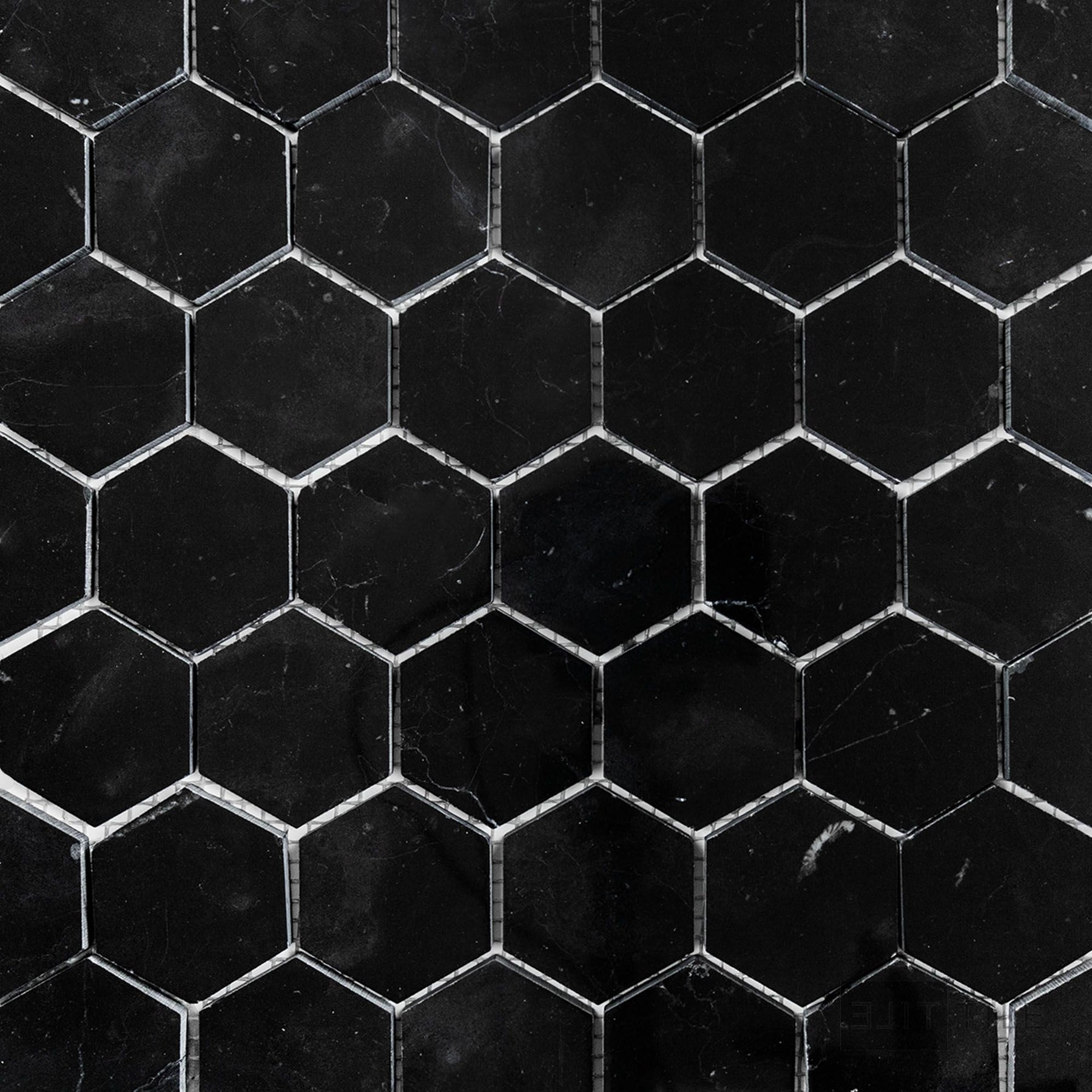 Negro Marquina Marble 2" Hexagon Polished Mosaic
