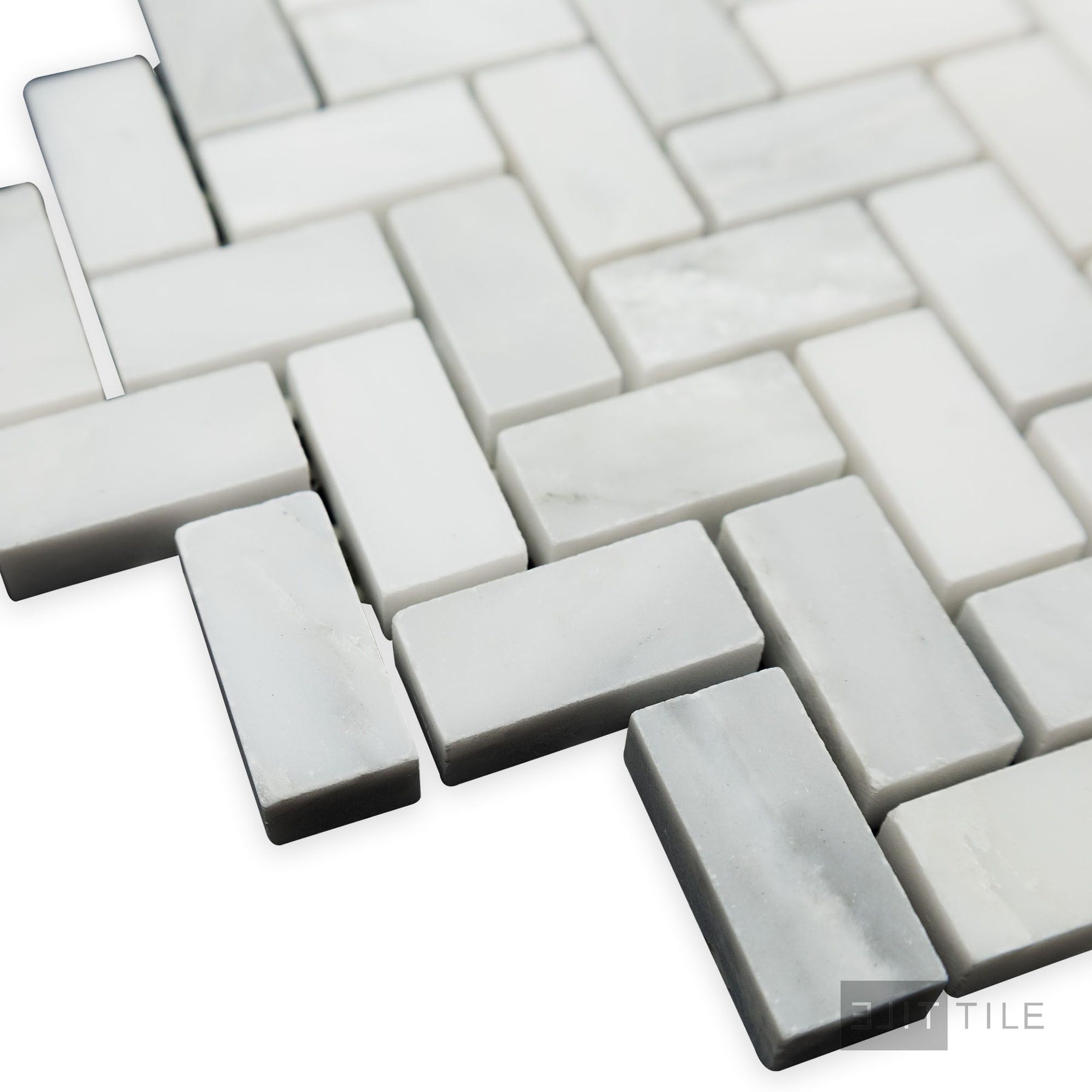 Oriental White Marble 5/8X1-1/4 Herringbone Honed Mosaic