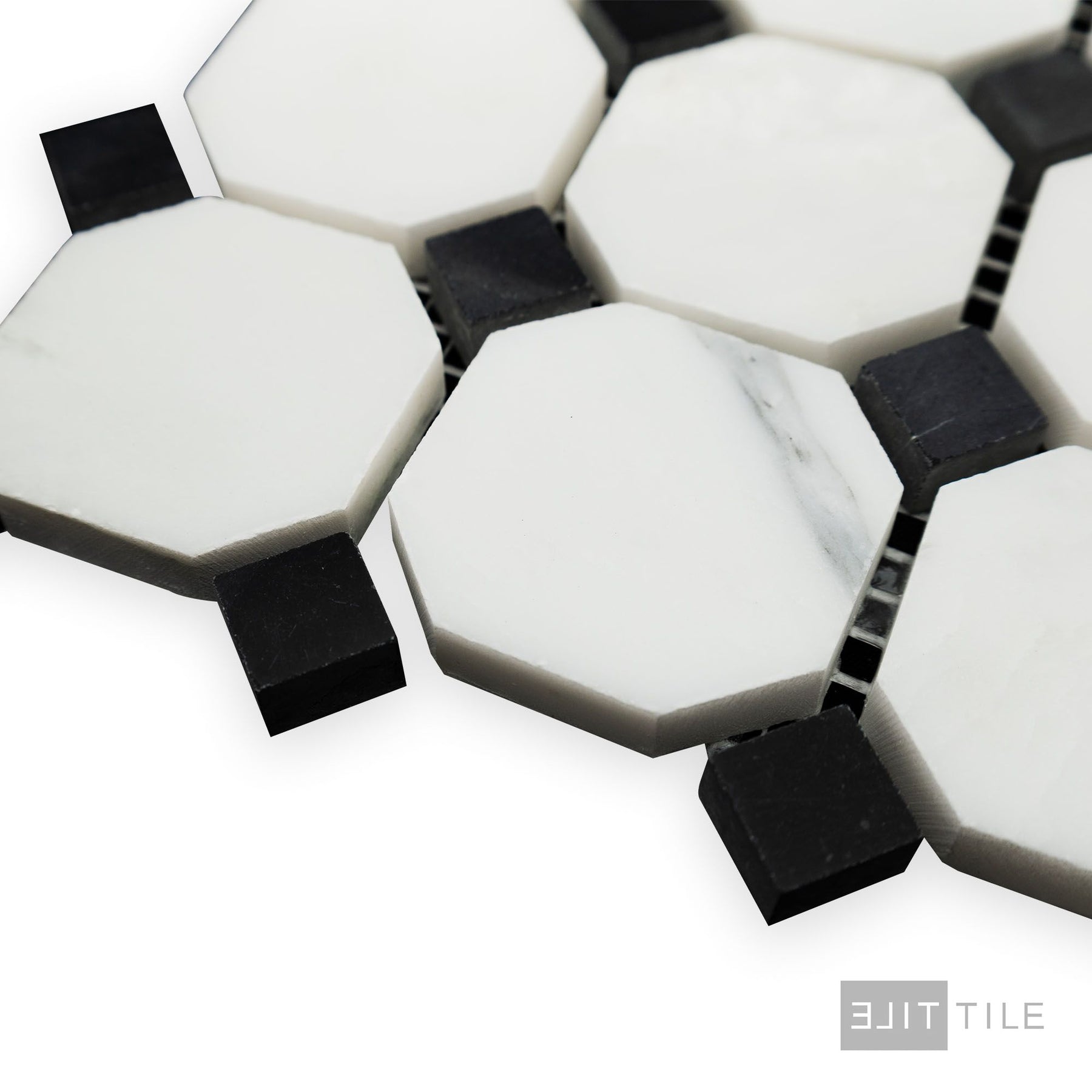 Oriental White Marble Octagon W/ Negro Marquina Honed Mosaic