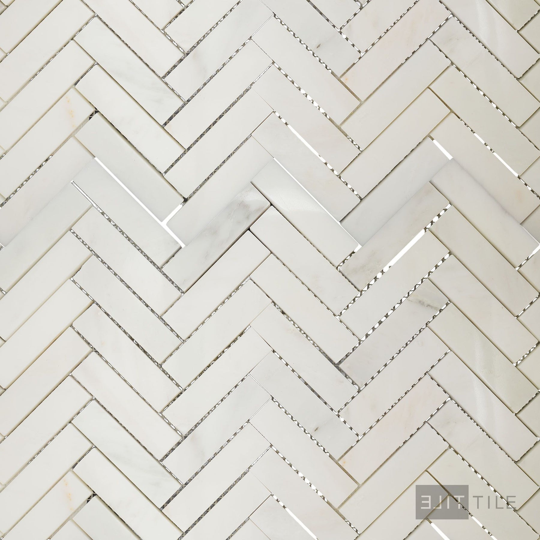Oriental White Marble 1X4 Herringbone Polished Mosaic