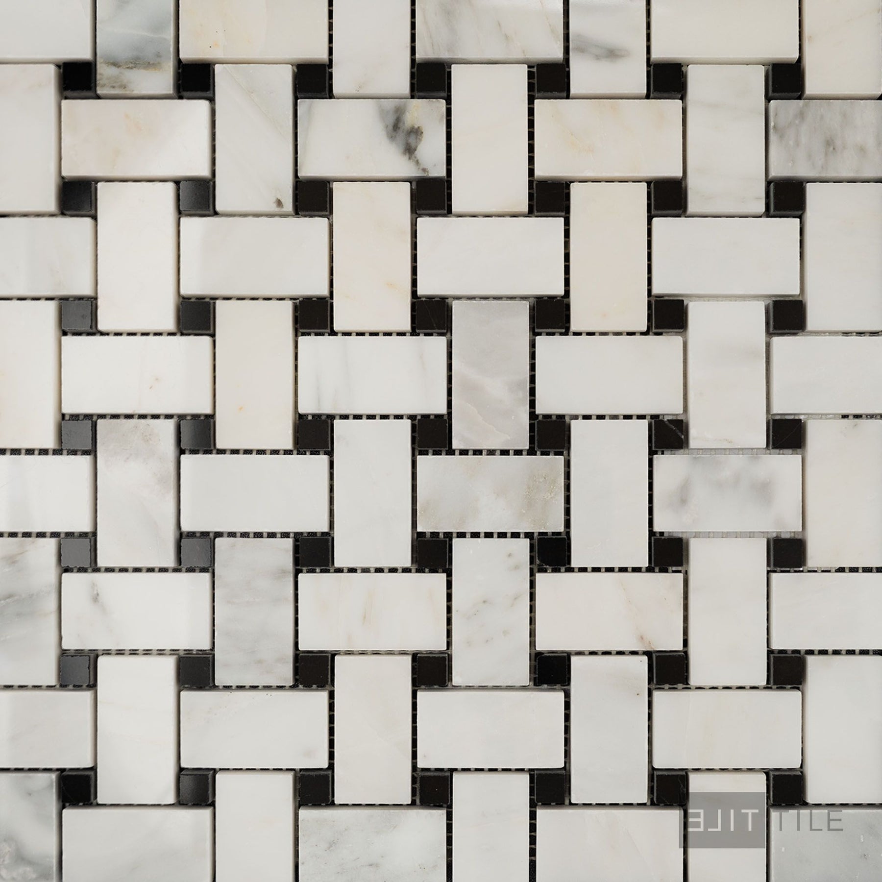 Oriental White Marble Basketweave W/ Black Dot Polished Mosaic