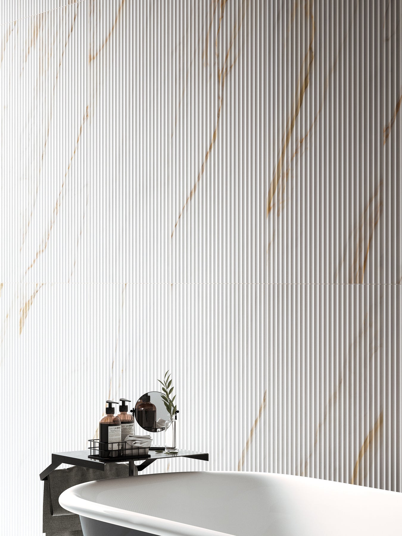 The Prestigio Collection reinterprets prestigious marbles from iconic quarries, showcasing their natural veining and rich color variations in a luxurious polished porcelain finish. Designed to bring timeless elegance into contemporary spaces, this collection also features a fluted decorative texture, adding depth and architectural interest to walls. Whether used for statement surfaces or refined backdrops, Prestigio blends classic marble beauty with modern design versatility—ideal for sophisticated residential and commercial interiors.