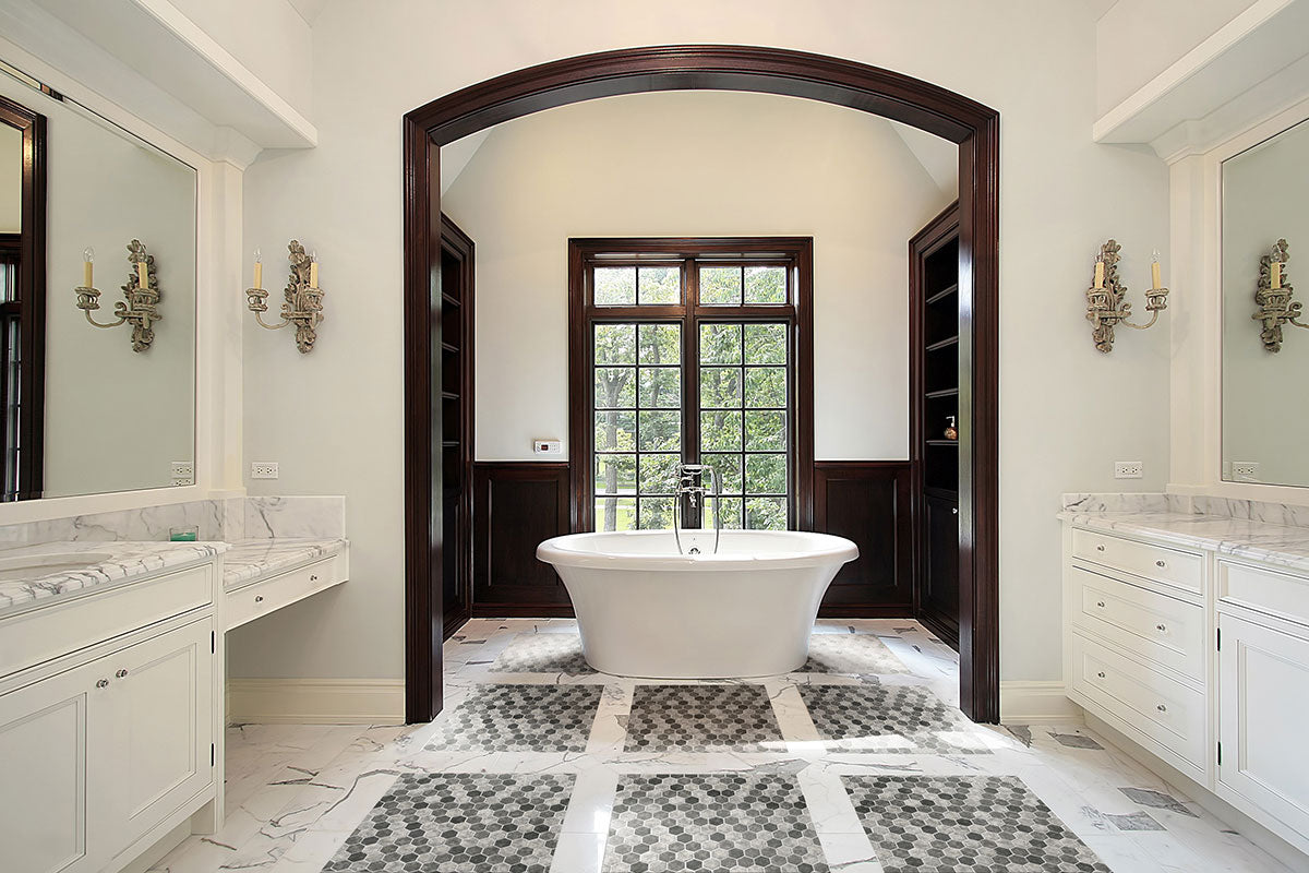 Revaso Recycled Glass collection features eco-friendly glass tiles in modern shapes like hexagons, subway, and herringbone patterns. Available in mesh-backed options with colors ranging from trending grays to classic white marble looks, these tiles are perfect for accent walls, backsplashes, and showers. Durable and stylish, the Revaso collection allows you to create eye-catching, designer-quality installations in both residential and commercial spaces.