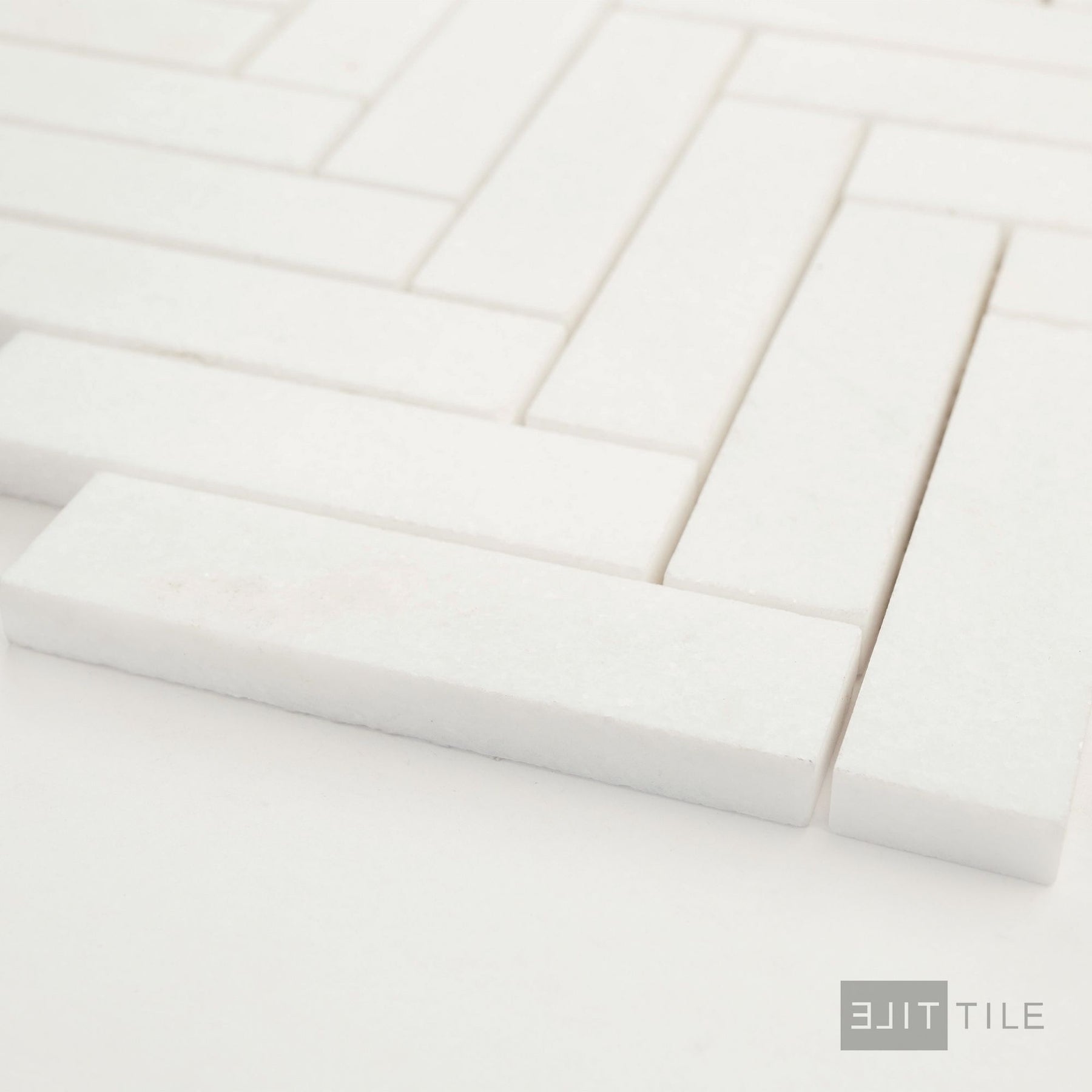 Thassos White Marble 1X4 Herringbone Honed Mosaic