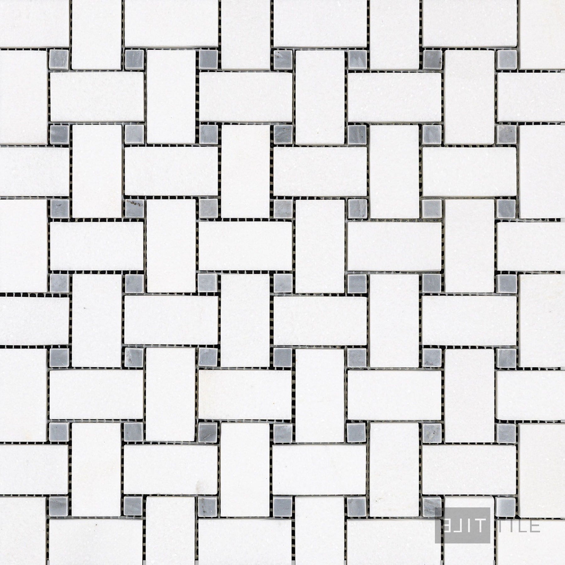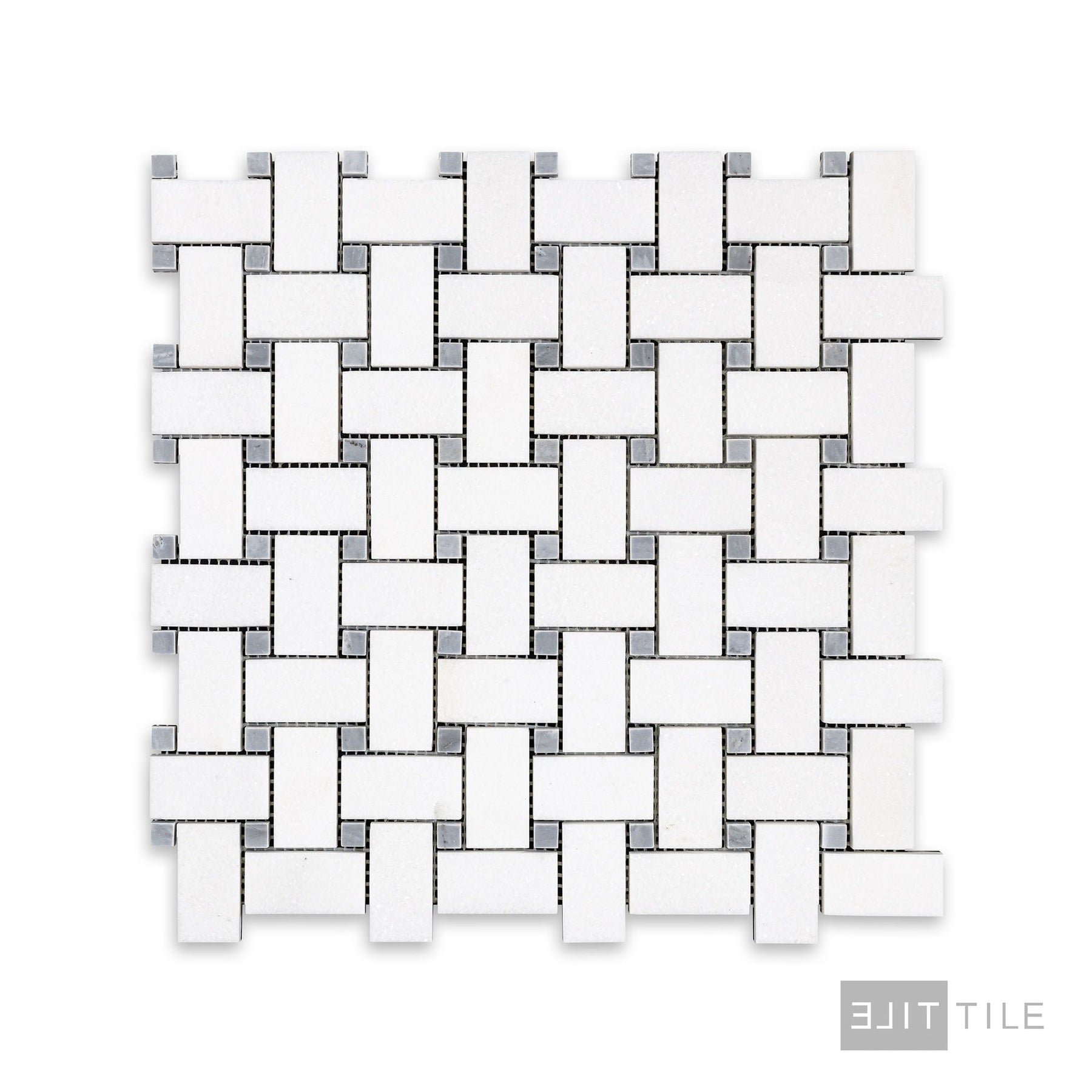 Thassos White Marble Basketweave W/ Blue Dot Honed Mosaic