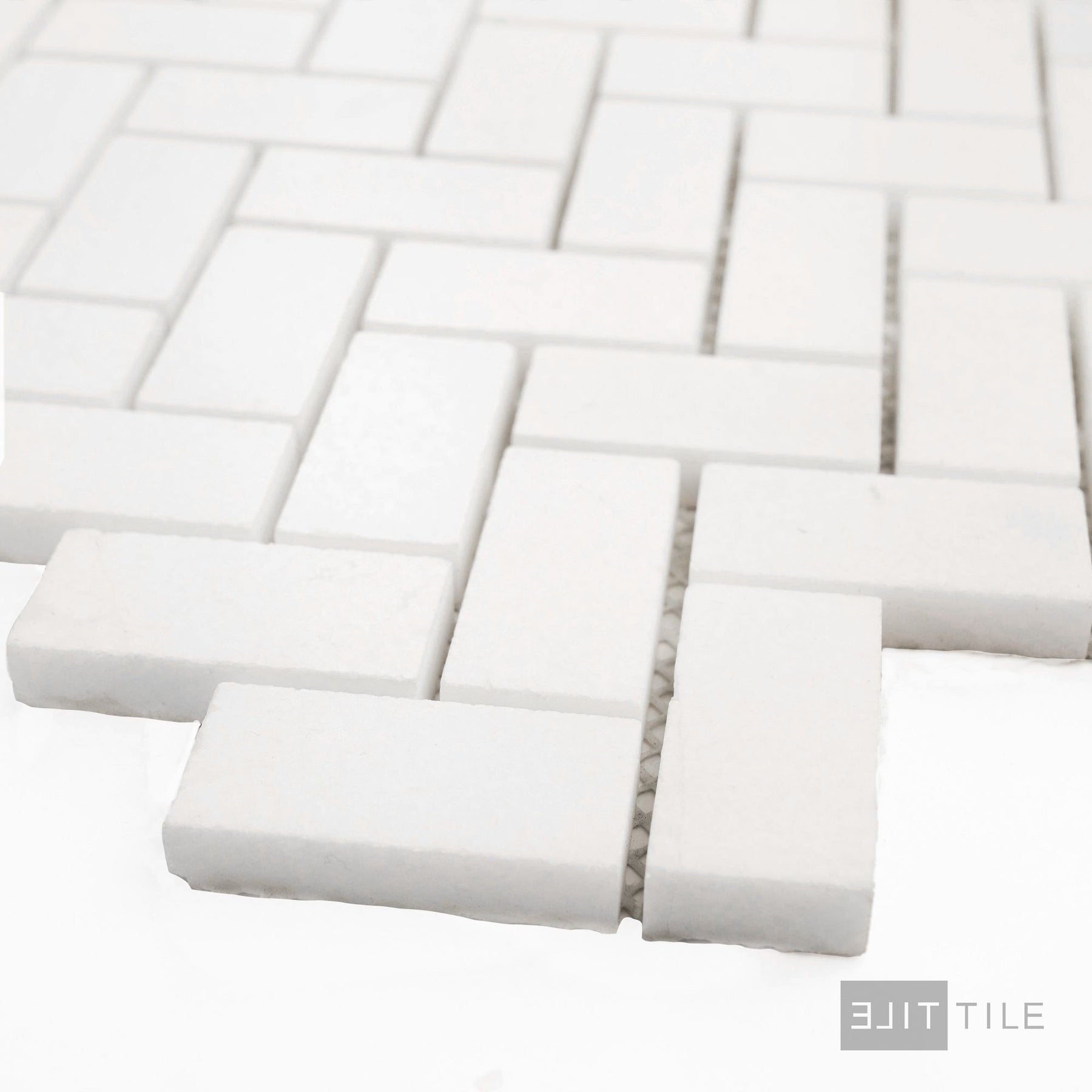 Thassos White Marble 1X2 Herringbone Polished Mosaic