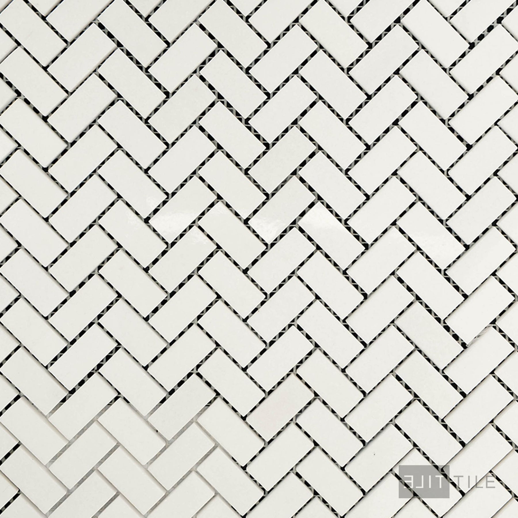 Thassos White Marble 5/8X1-1/4 Herringbone Polished Mosaic