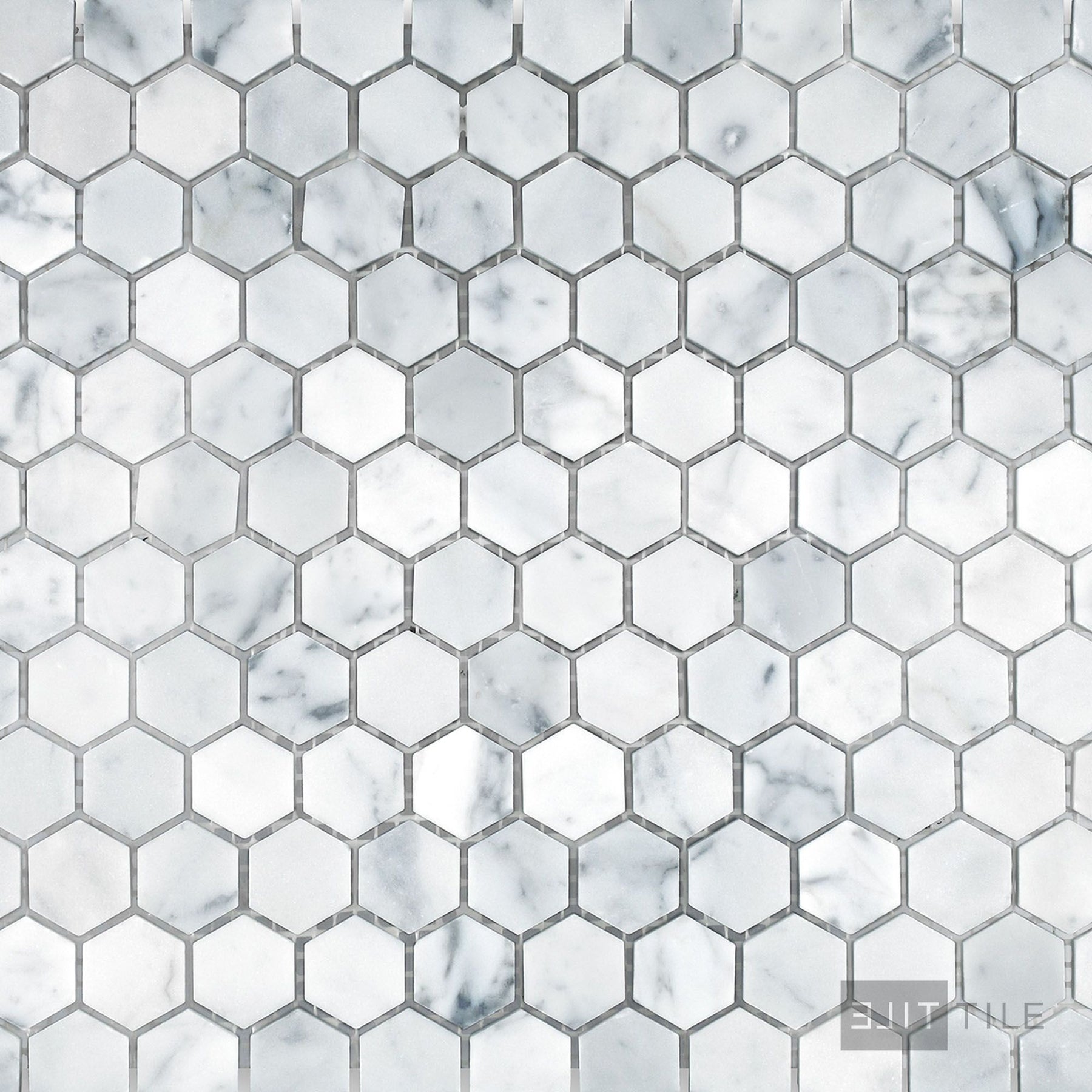White Carrara Marble 1" Hexagon Honed Mosaic