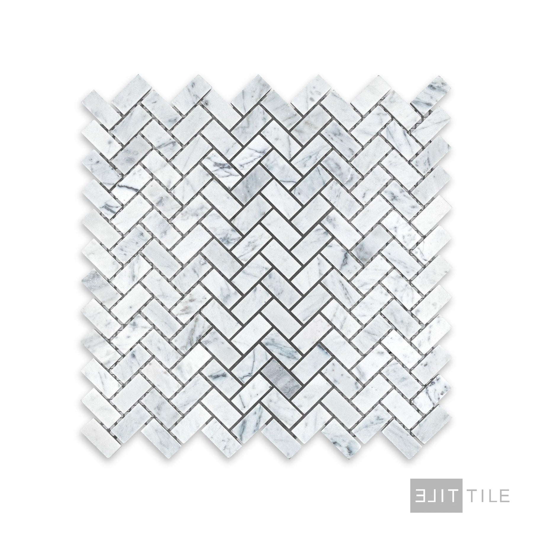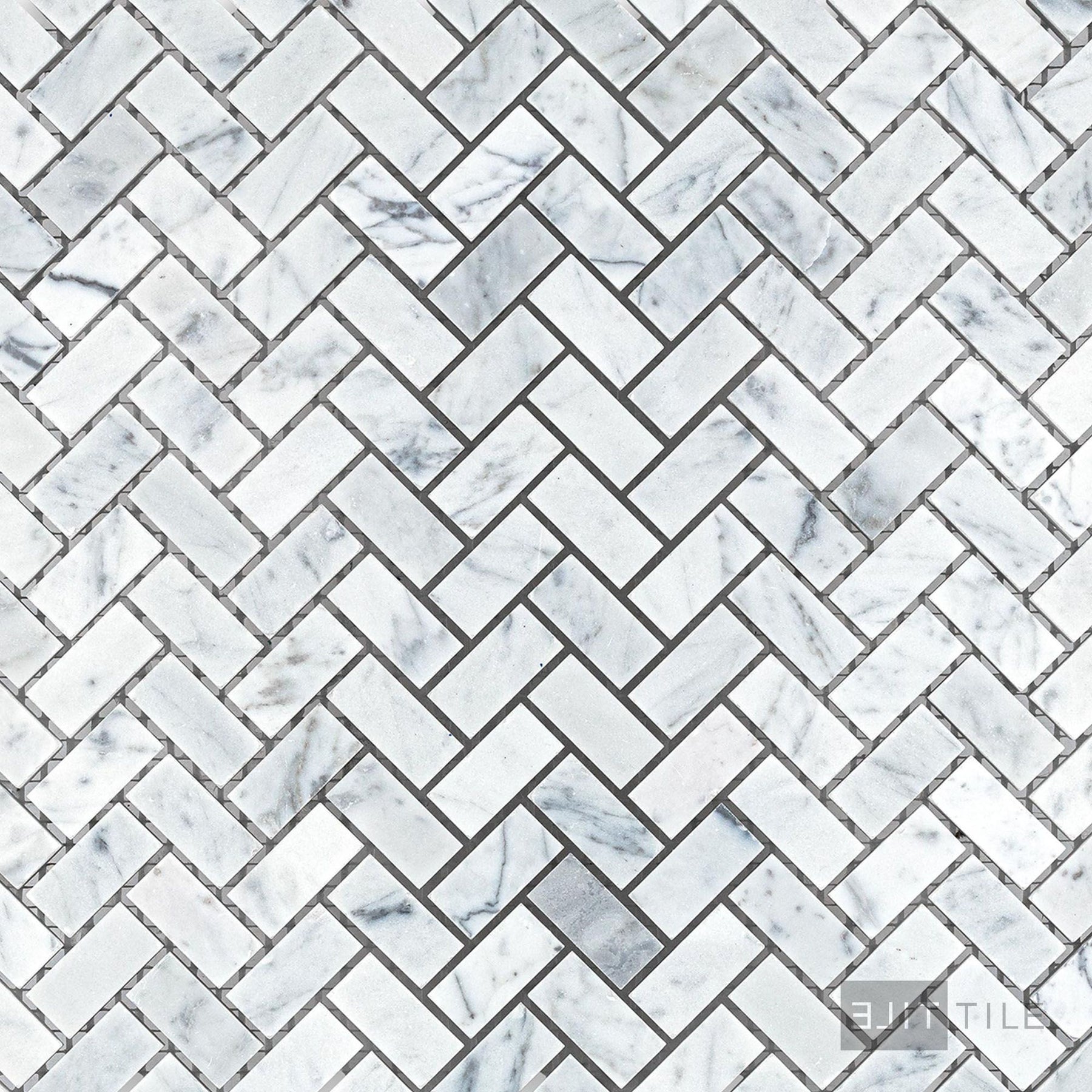 White Carrara Marble 5/8X1-1/4 Herringbone Honed Mosaic