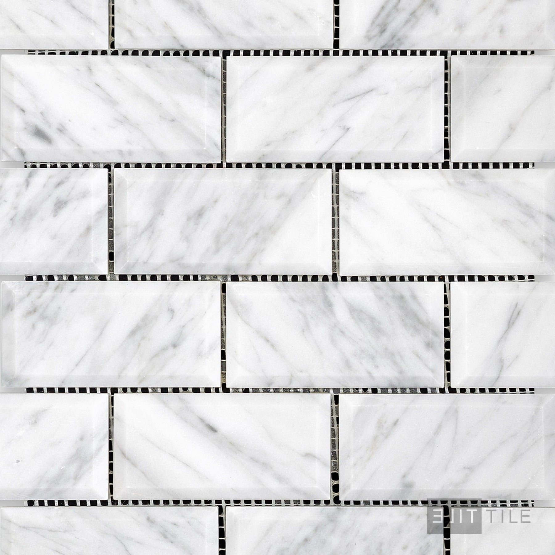 White Carrara Marble 2X4 Brick Beveled Honed Mosaic
