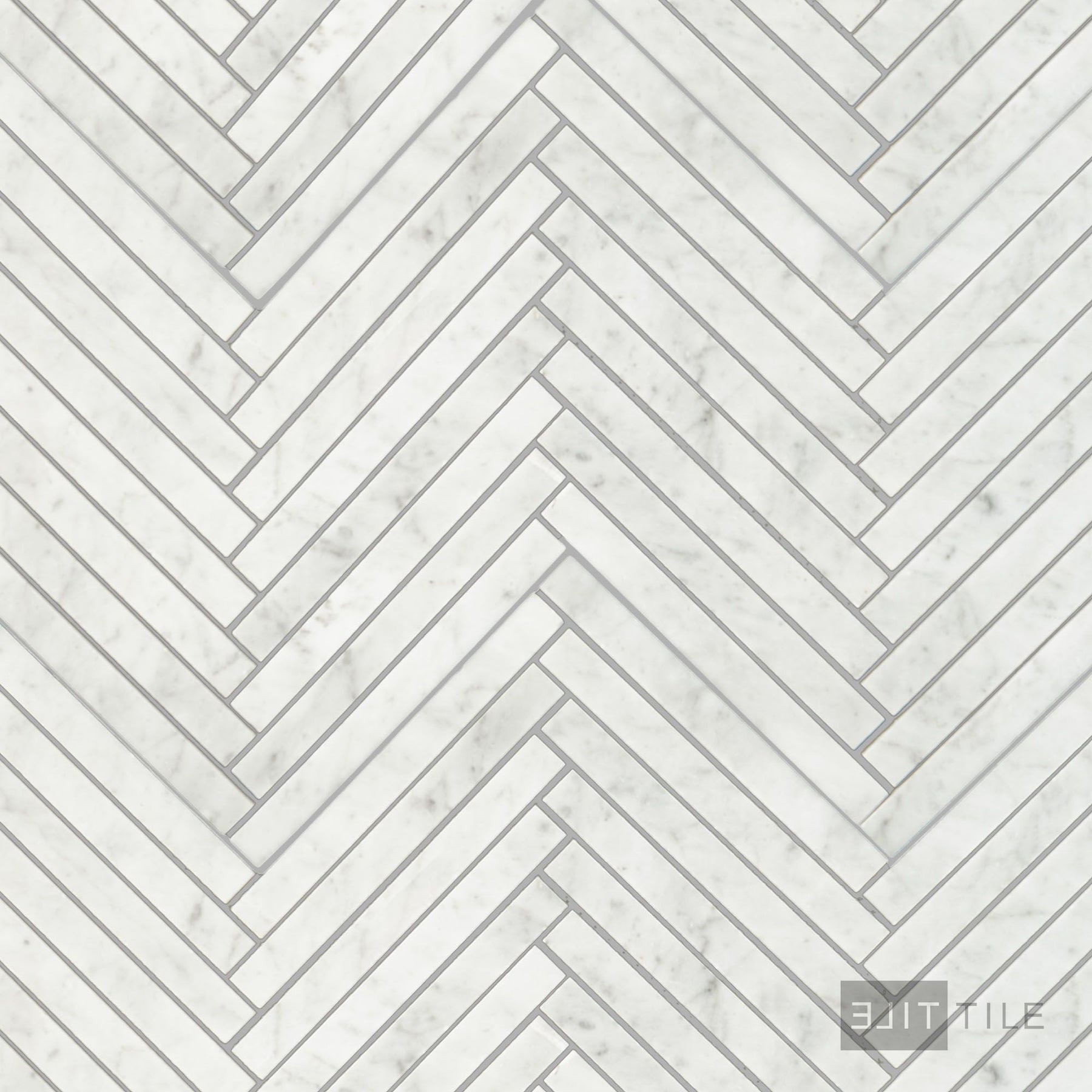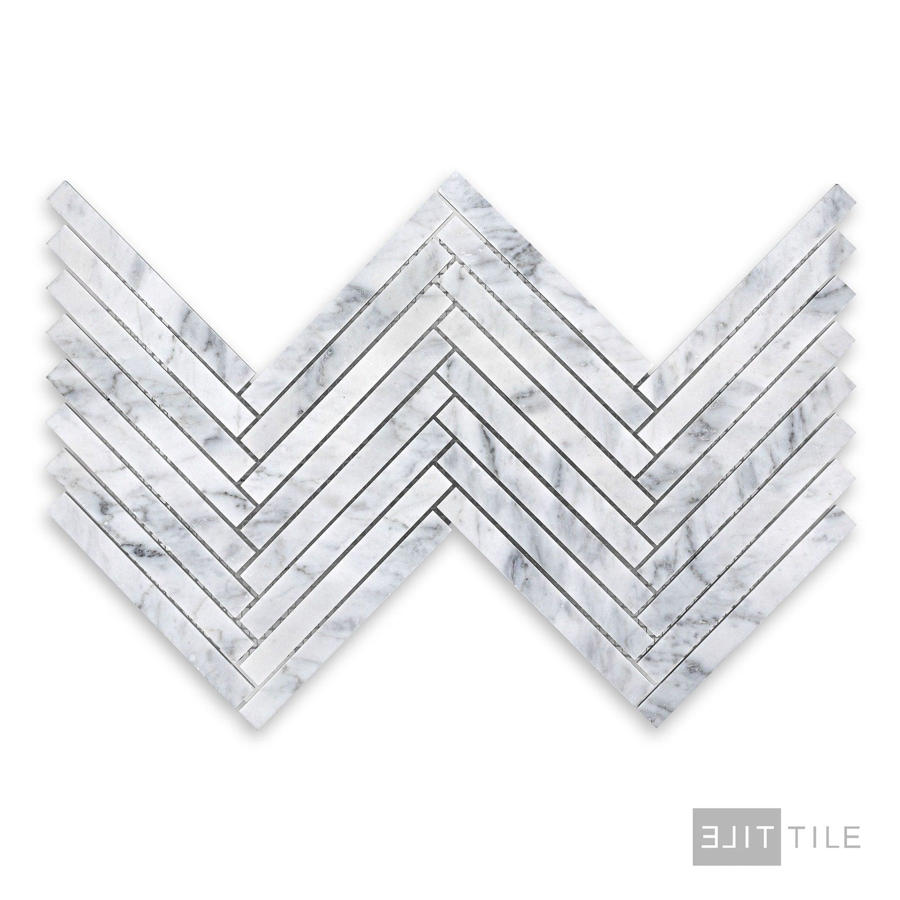 White Carrara Marble 5/8X6 Herringbone Honed Mosaic