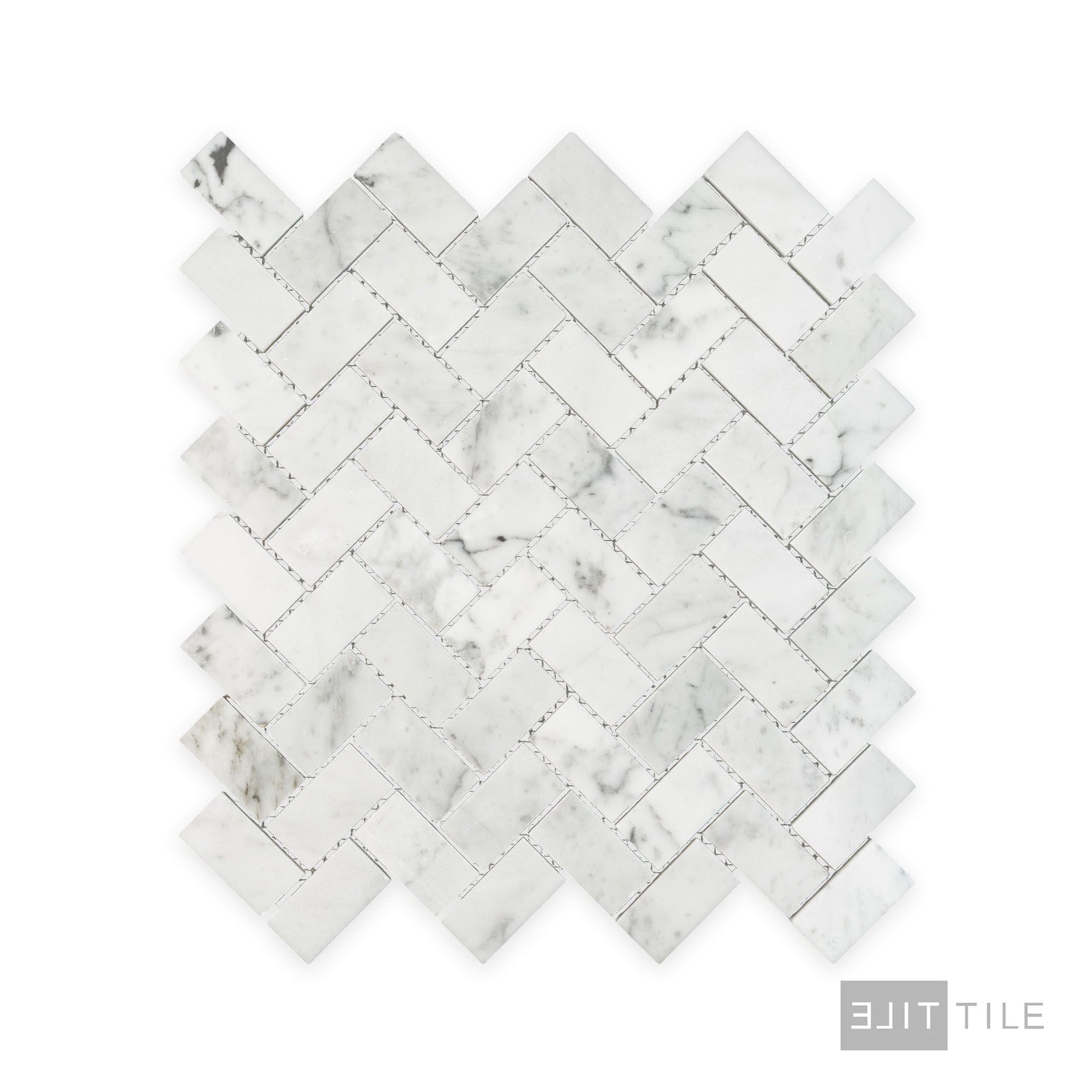 White Carrara Marble 1X2 Herringbone Polished Mosaic