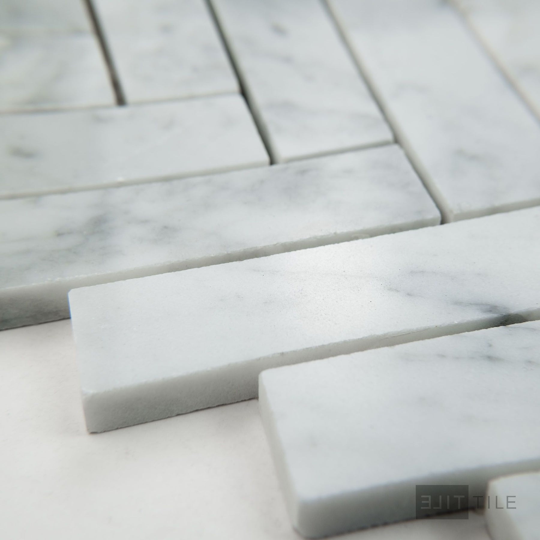 White Carrara Marble 1X4 Herringbone Polished Mosaic