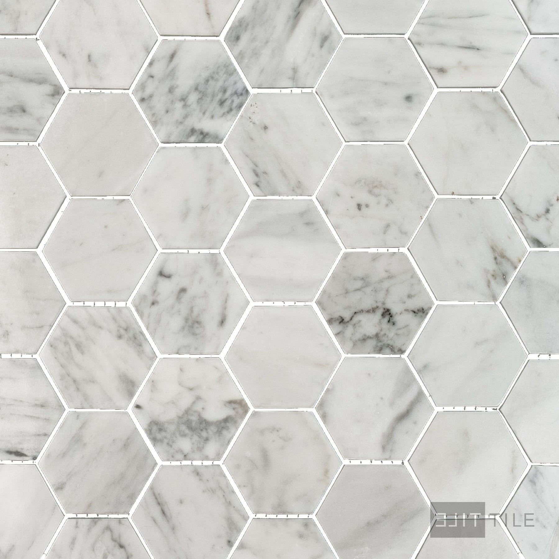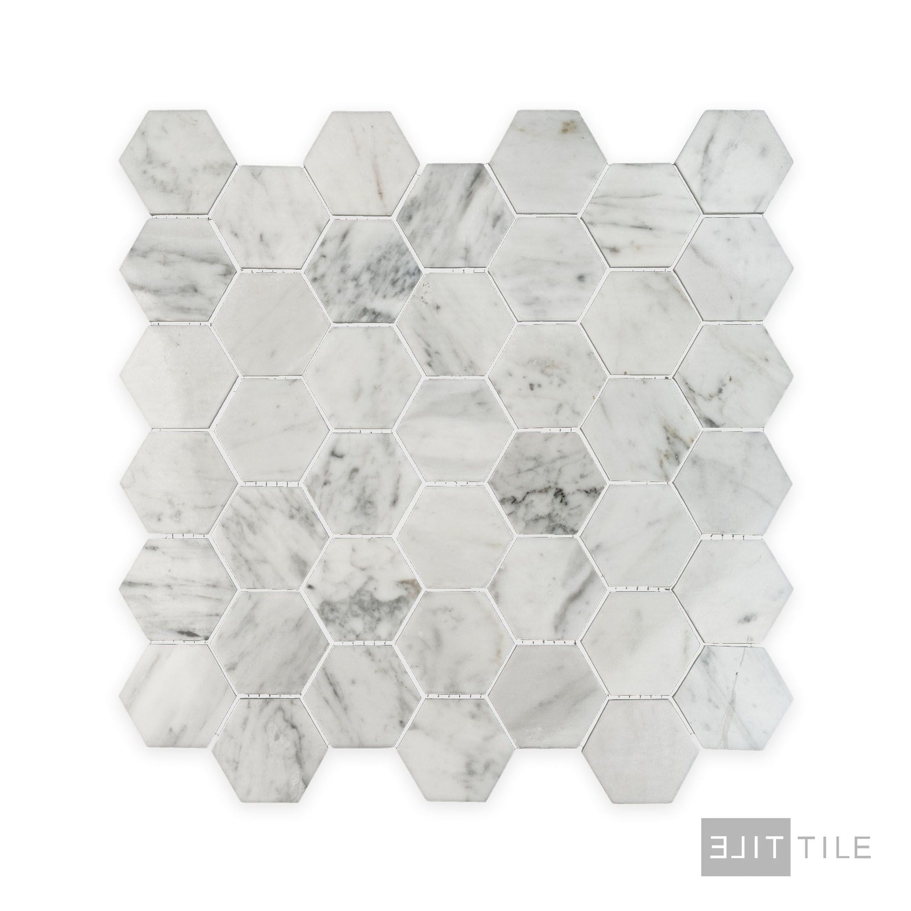 White Carrara Marble 2" Hexagon Polished Mosaic