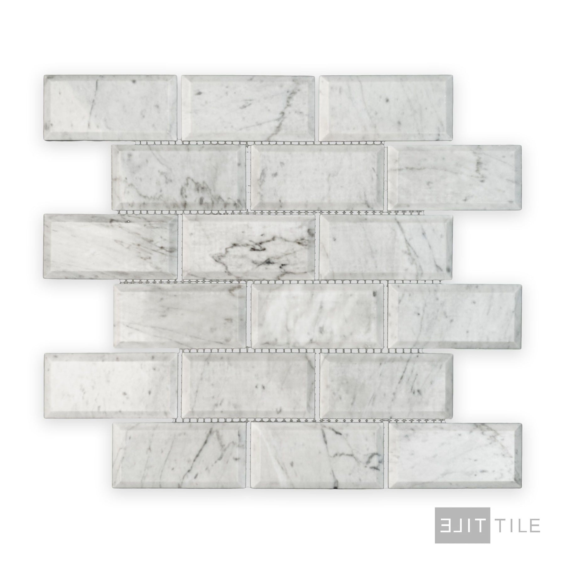 White Carrara Marble 2X4 Brick Beveled Polished Mosaic