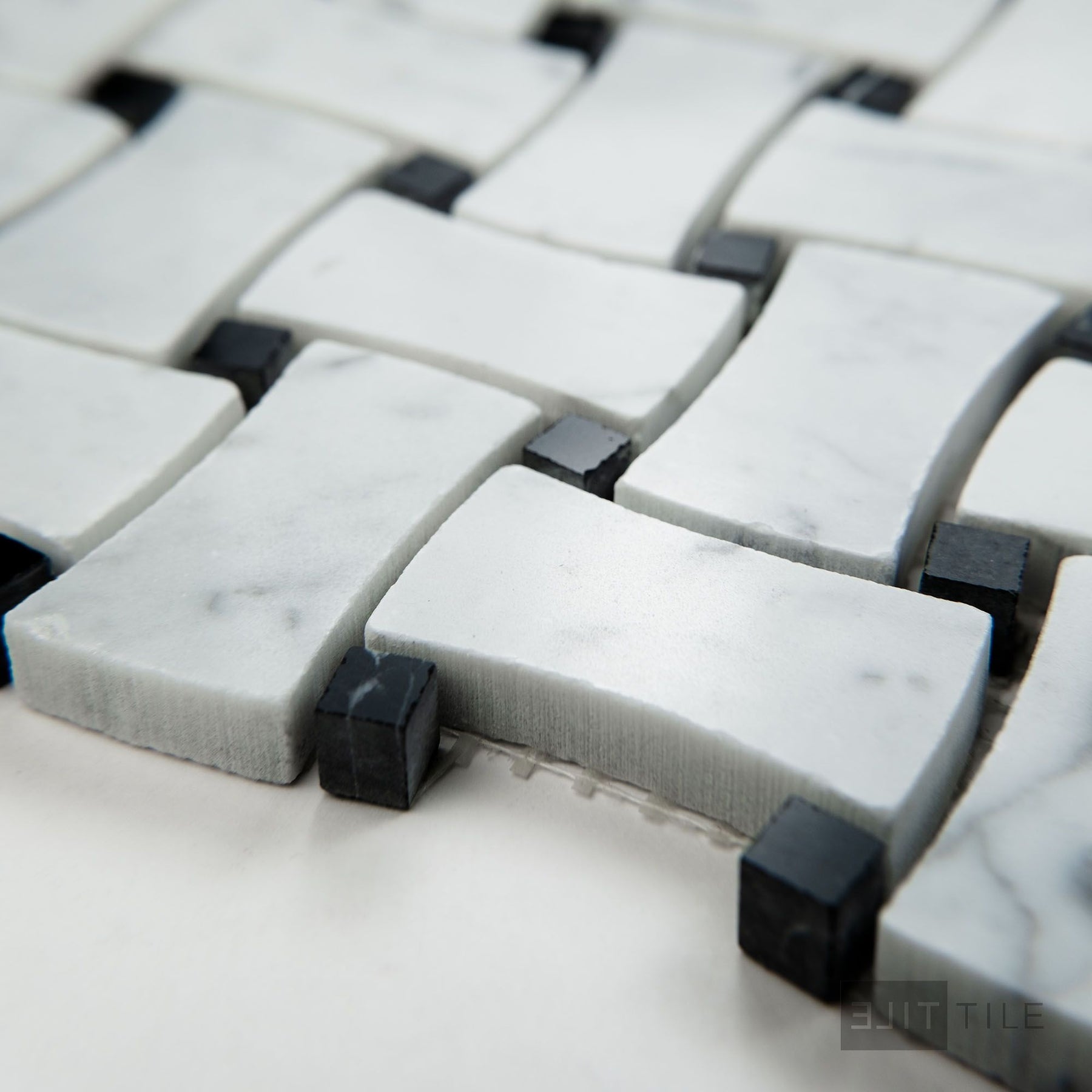 White Carrara Marble Dogbone Basketweave Polished Mosaic