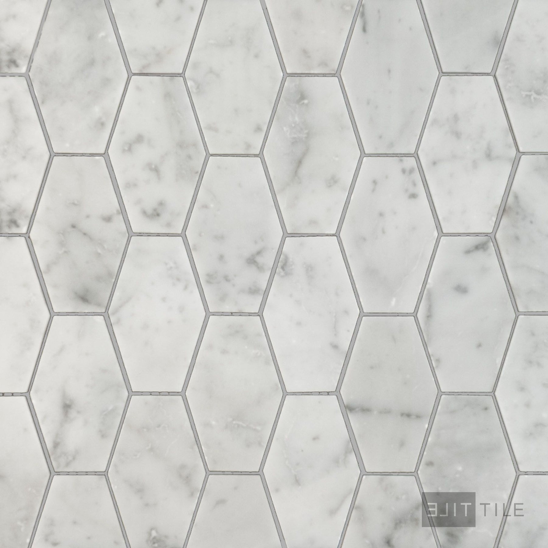 White Carrara Marble Elongated Hexagon Polished Mosaic
