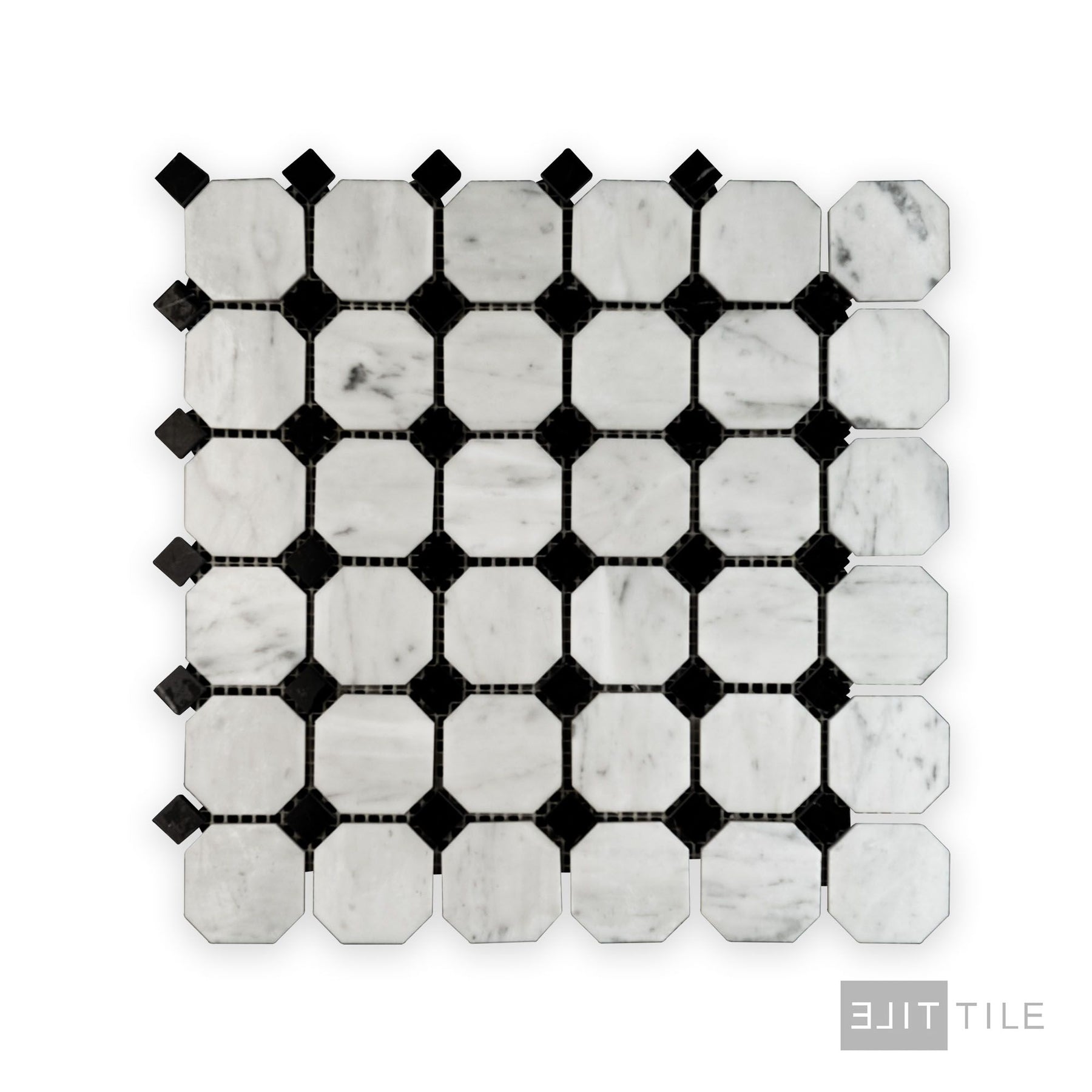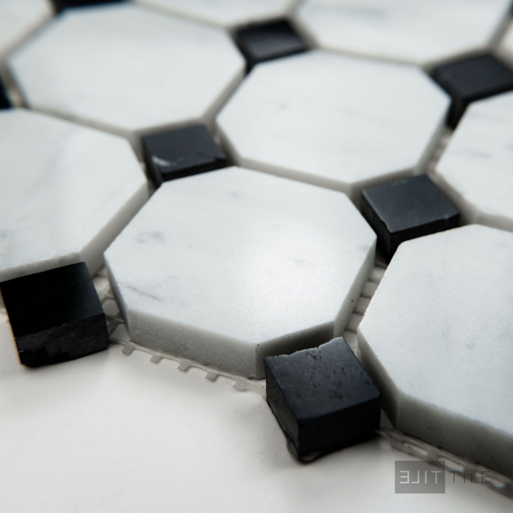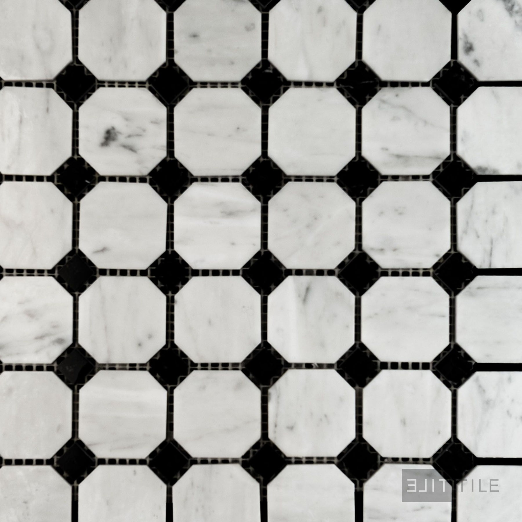 White Carrara Marble Octagon W/ Negro Marquina Polished Mosaic