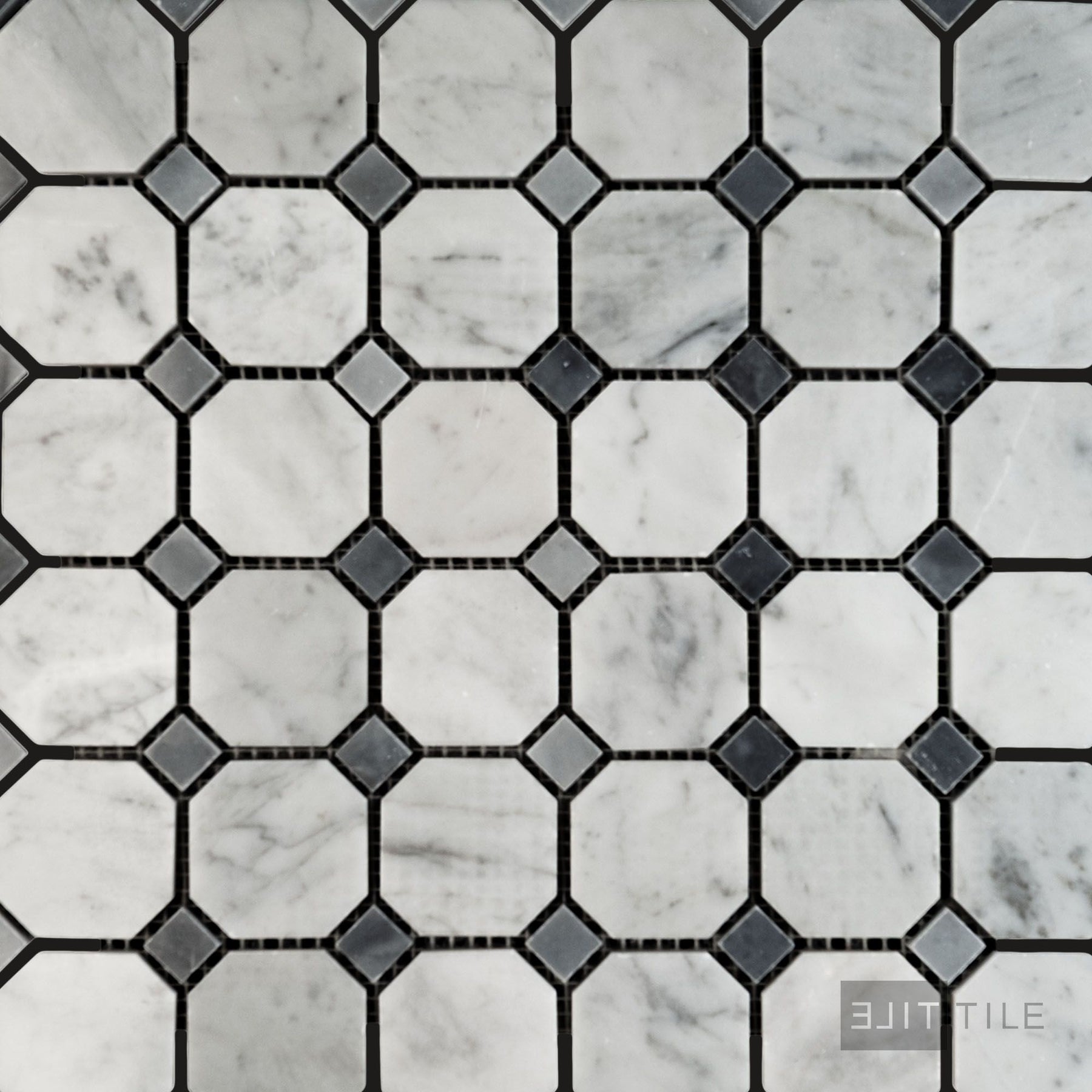 White Carrara Marble Octagon W/Blue Dot Polished Mosaic