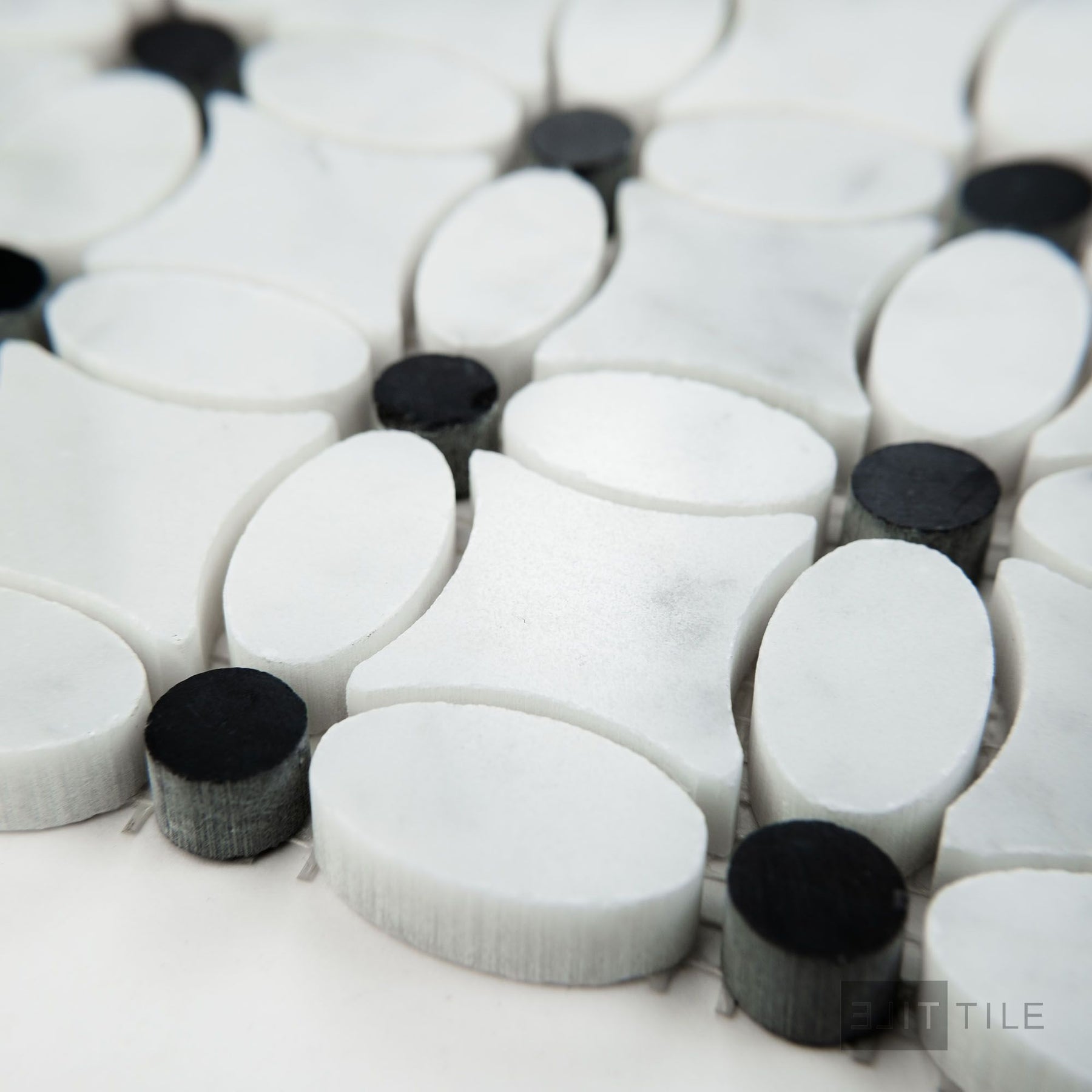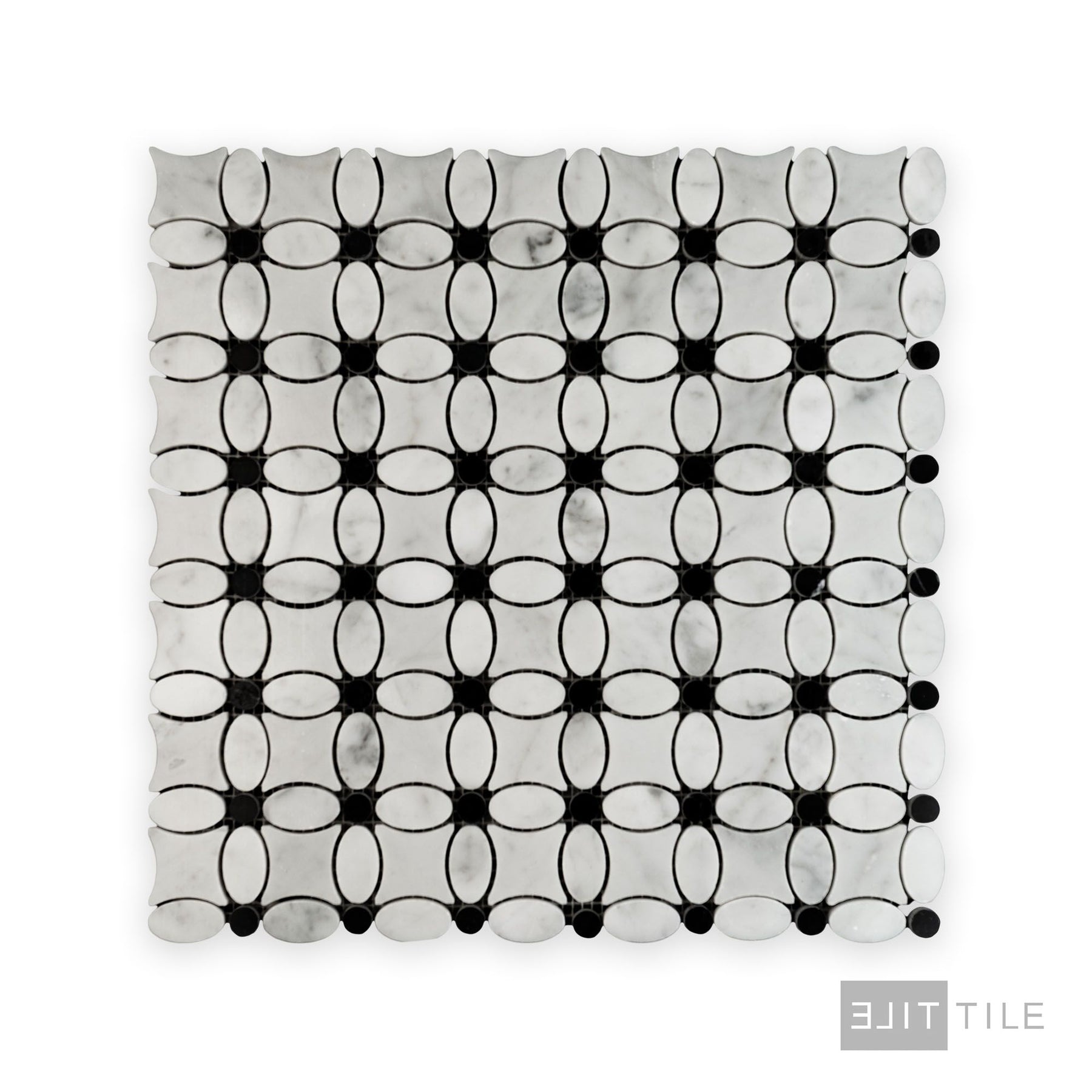 White Carrara Marble Flower Mosaic W/ Negro Marquina Polished